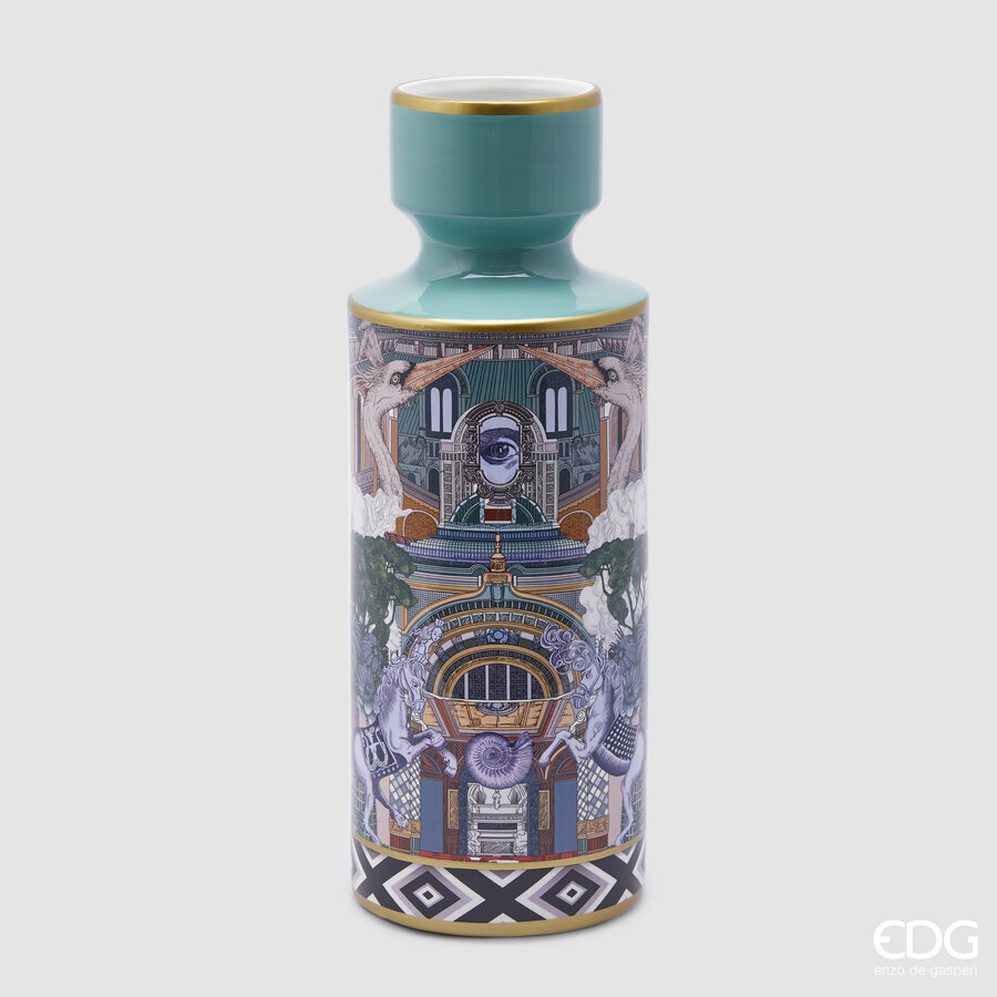 Høy porselen-vase med nydelig print fra italienske Enzo De Gasperi. Perfekt til blomster, strå, fjær - eller bare dekorativ i seg selv. EDG Exclusive.