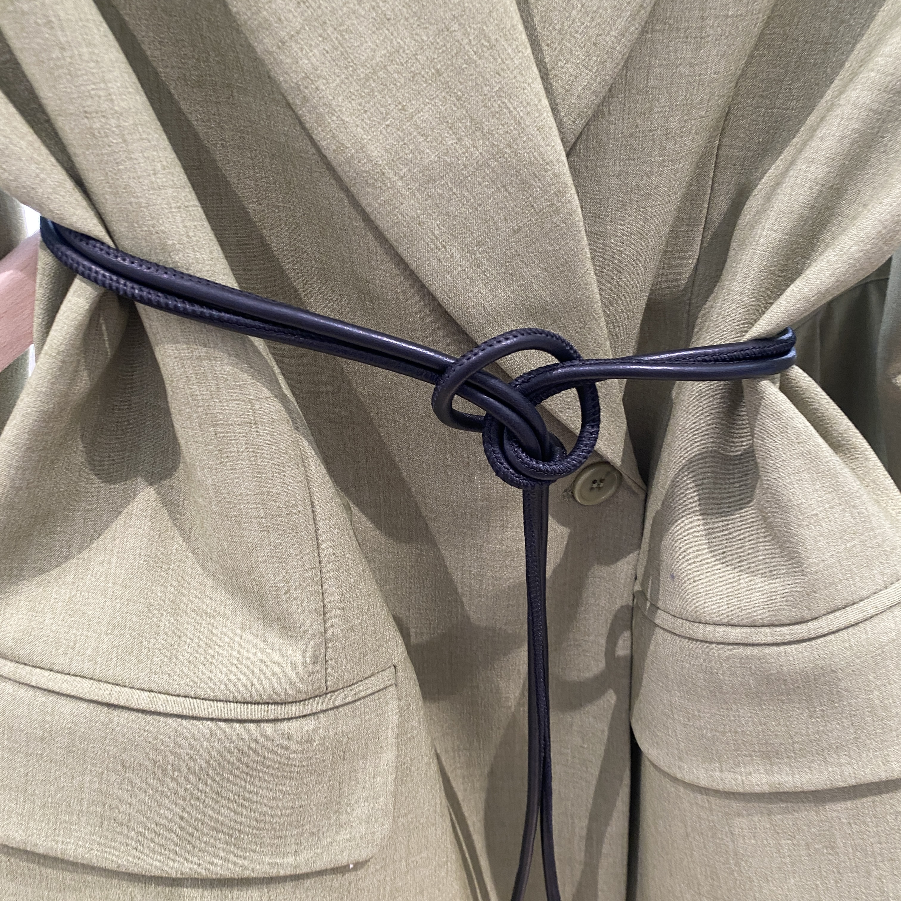 Belte i skinn fra Selcted Femme. Skinn-snor som kan knytes på mange ulike måter.