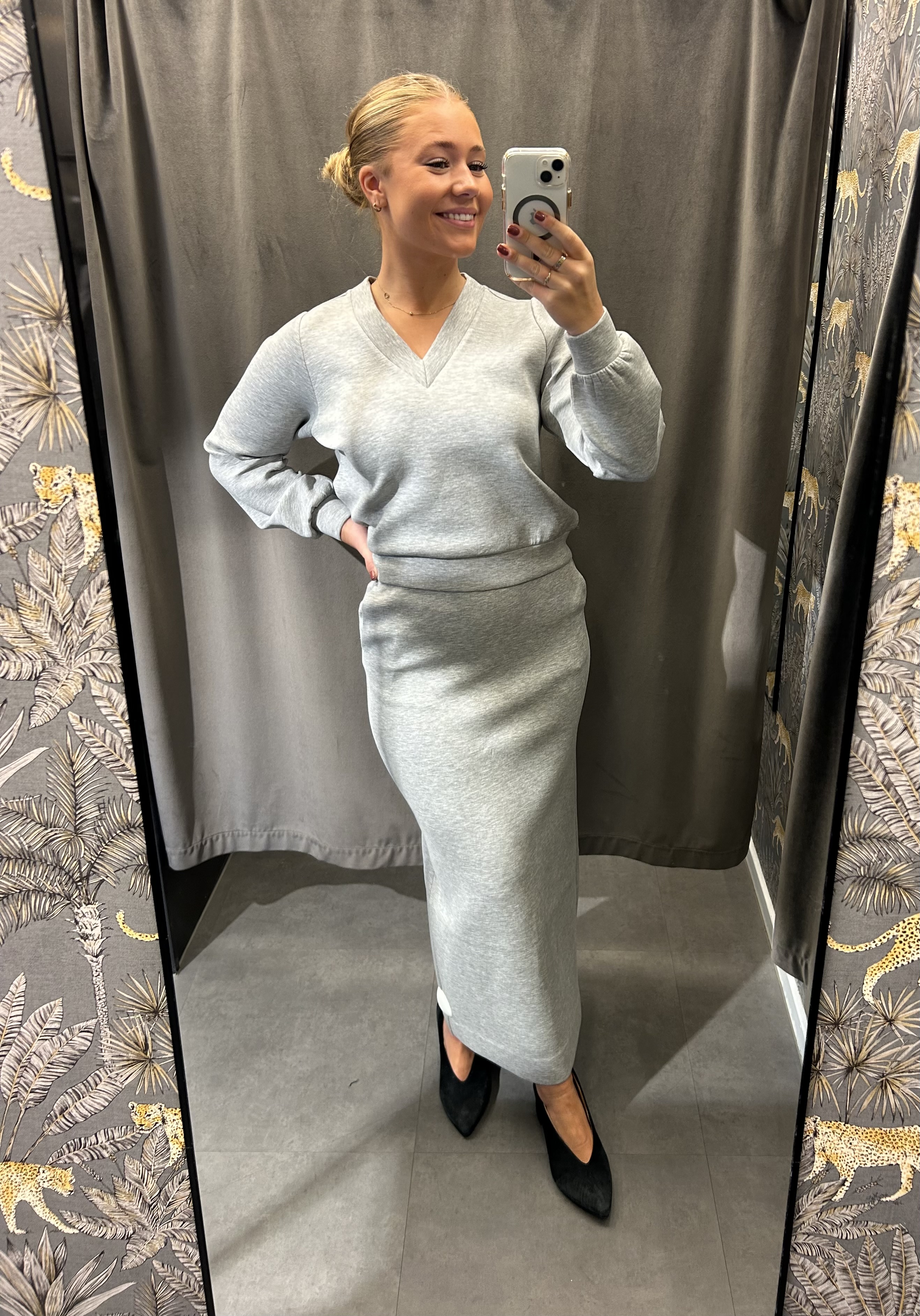 Skjørt i deilig sweat-kvalitet med lommer fra Selected Femme. Glidelås-lukking & splitt bak. Fin i sett med Jamila V-Neck Sweat.