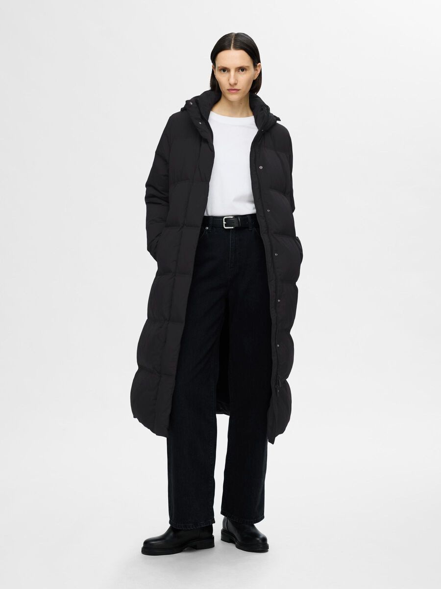 Dunkåpe med avtagbar hette fra Selected Femme. Toveis glidelås- og trykknapp-lukking, strikkemansjetter & store gode lommer med glidelåslukking. En innvendig lomme med glidelås. Et must til vinteren!