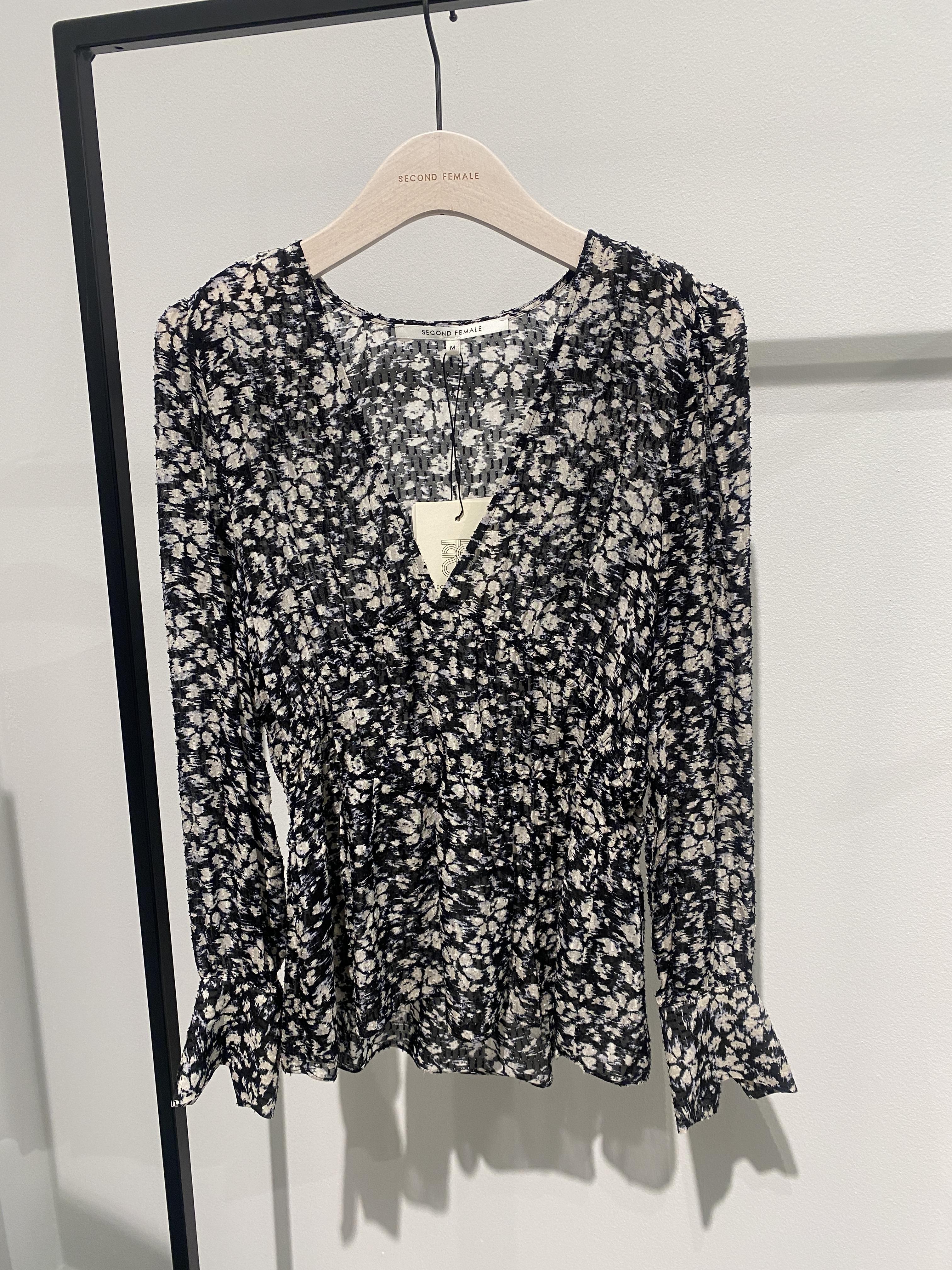 Bluse med V-hals fra Second Female. Innsvinget modell.