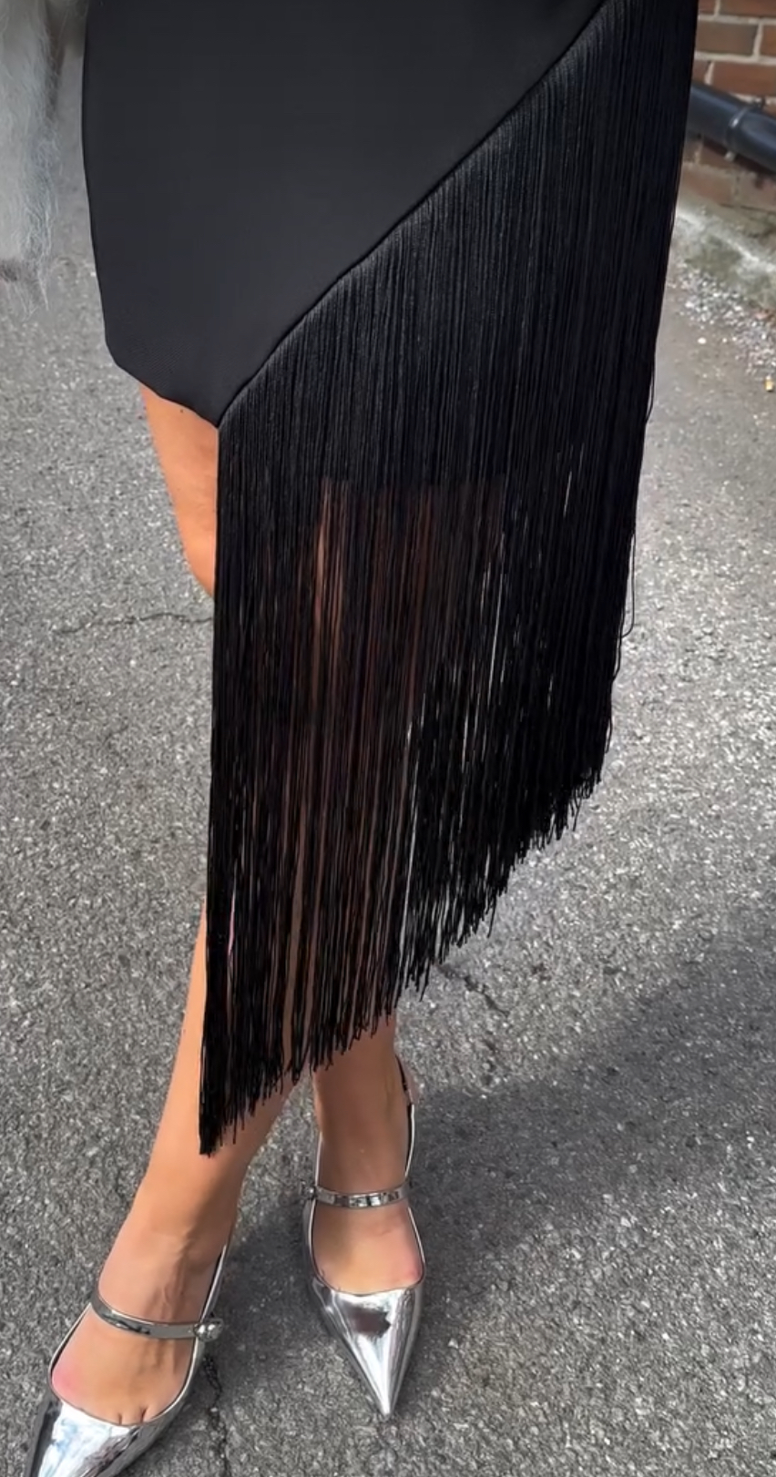 Skjørt med lange frynser fra Second Female. Stødig stoff.