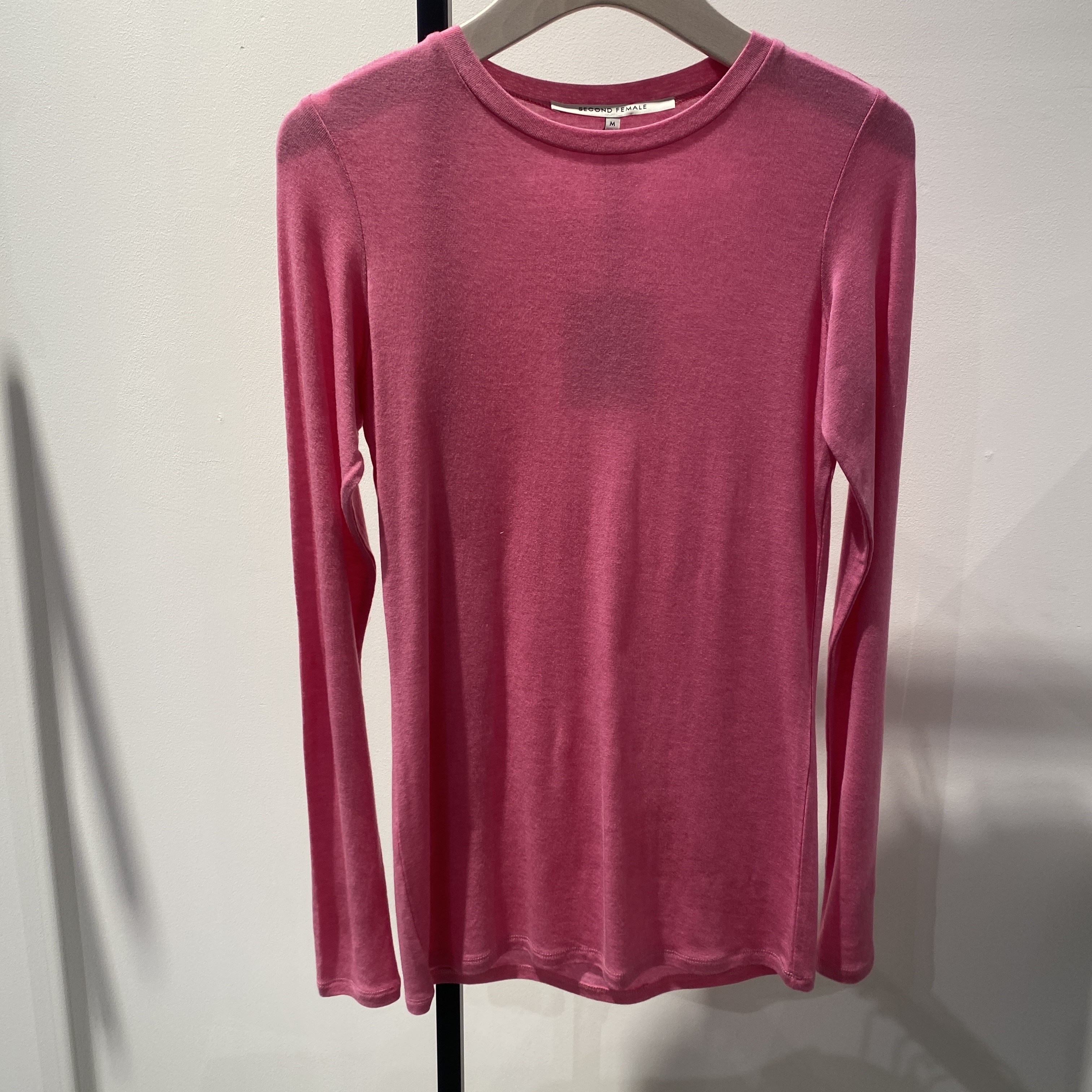 Tynn, supermyk topp i ullblanding fra Second Female. Smal, ettersittende modell. Noe transparent.