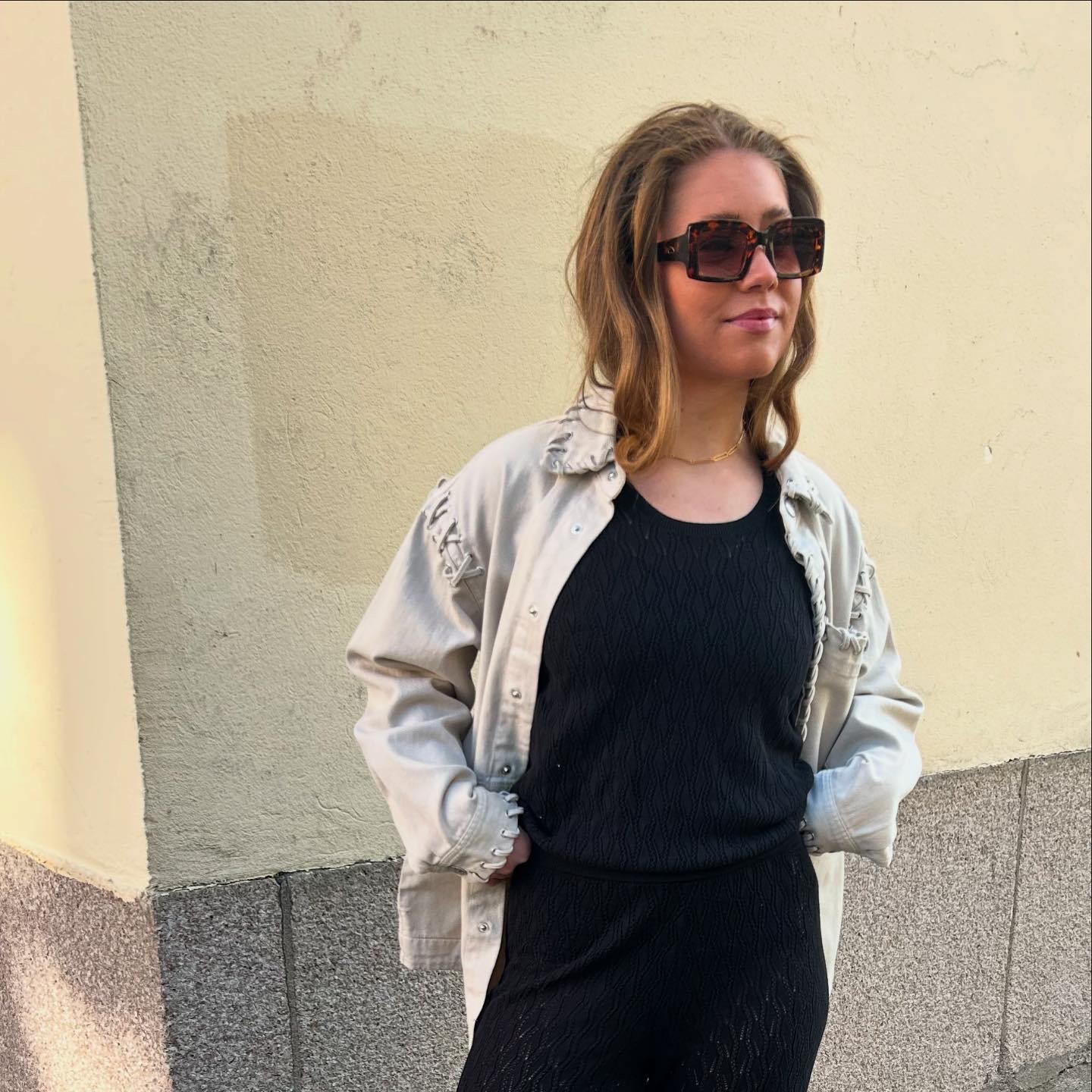 Stor-skjorte fine detaljer fra Copenhagen Muse. Fin i sett med Charlee Skirt.
