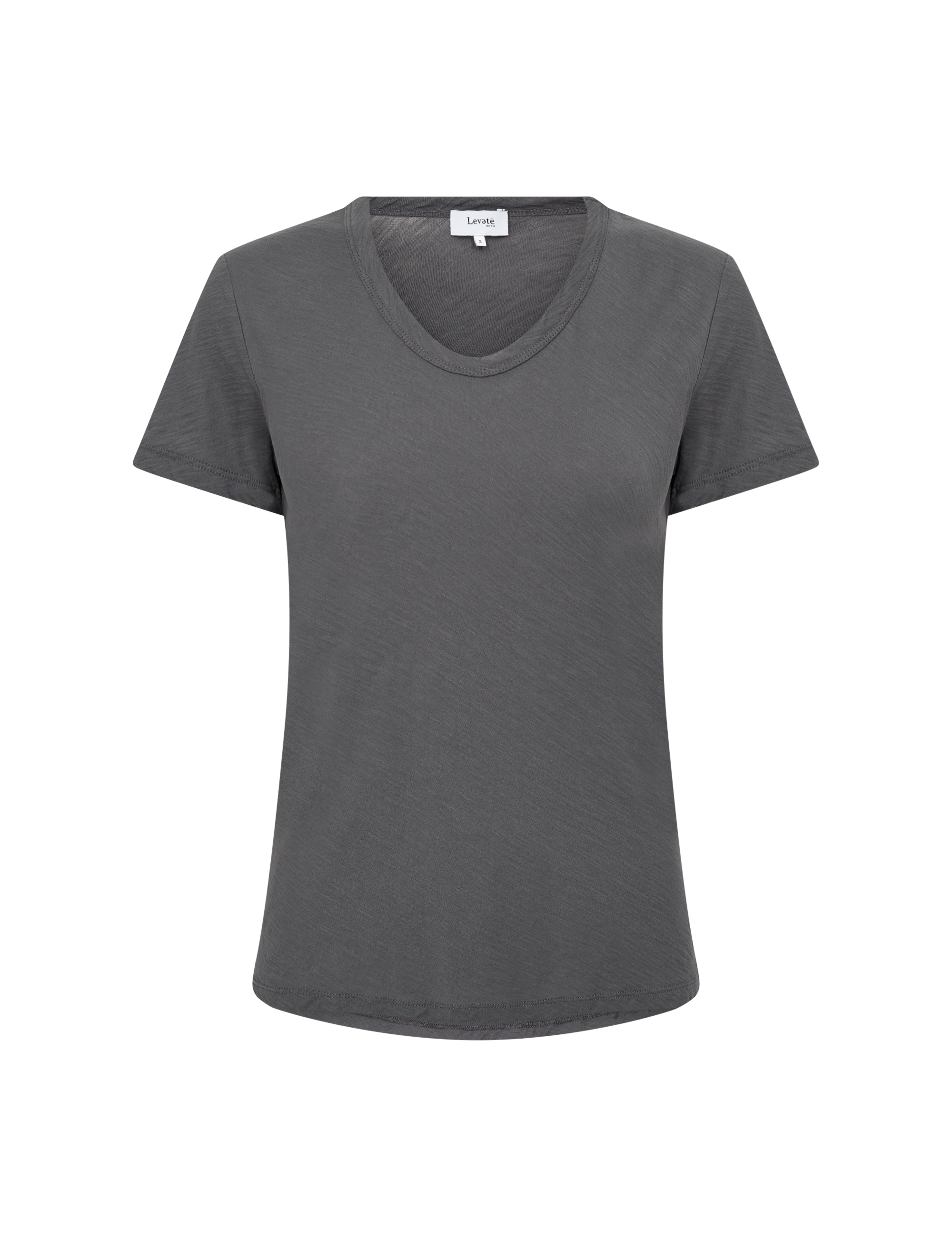 Supermyk basetopp med kort erm & v-hals fra Levete Room. Lett gjennomskinnelig stoff.