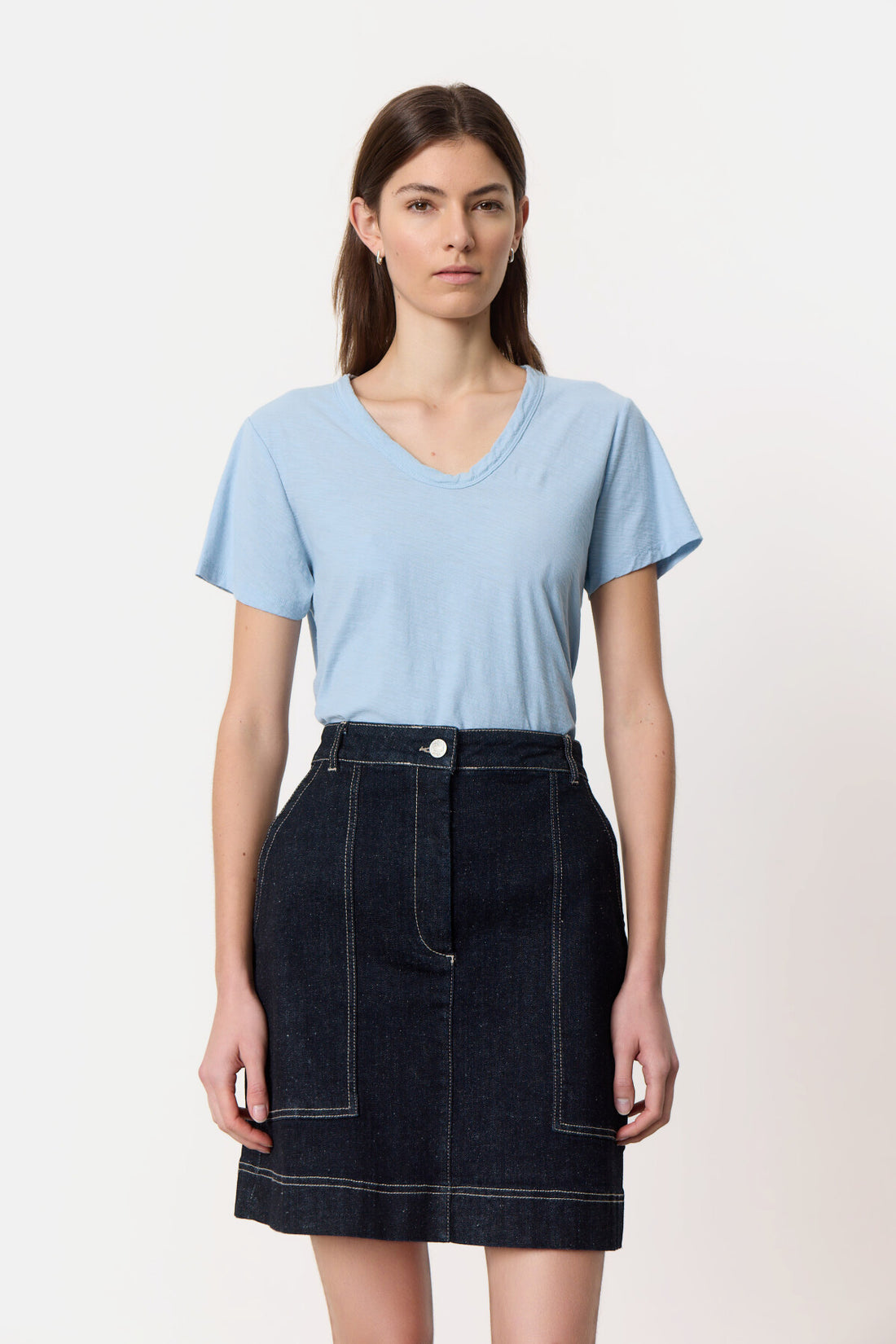 Supermyk basetopp med kort erm & avrundet v-hals fra Levete Room. Lett gjennomskinnelig stoff.