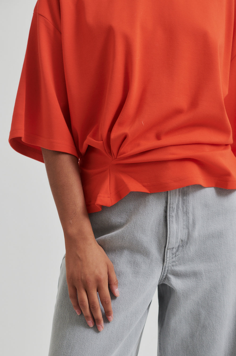 Oversize t-skjorte med drapering i siden fra Second Female. Kraftig stoff & noe kortere modell.
