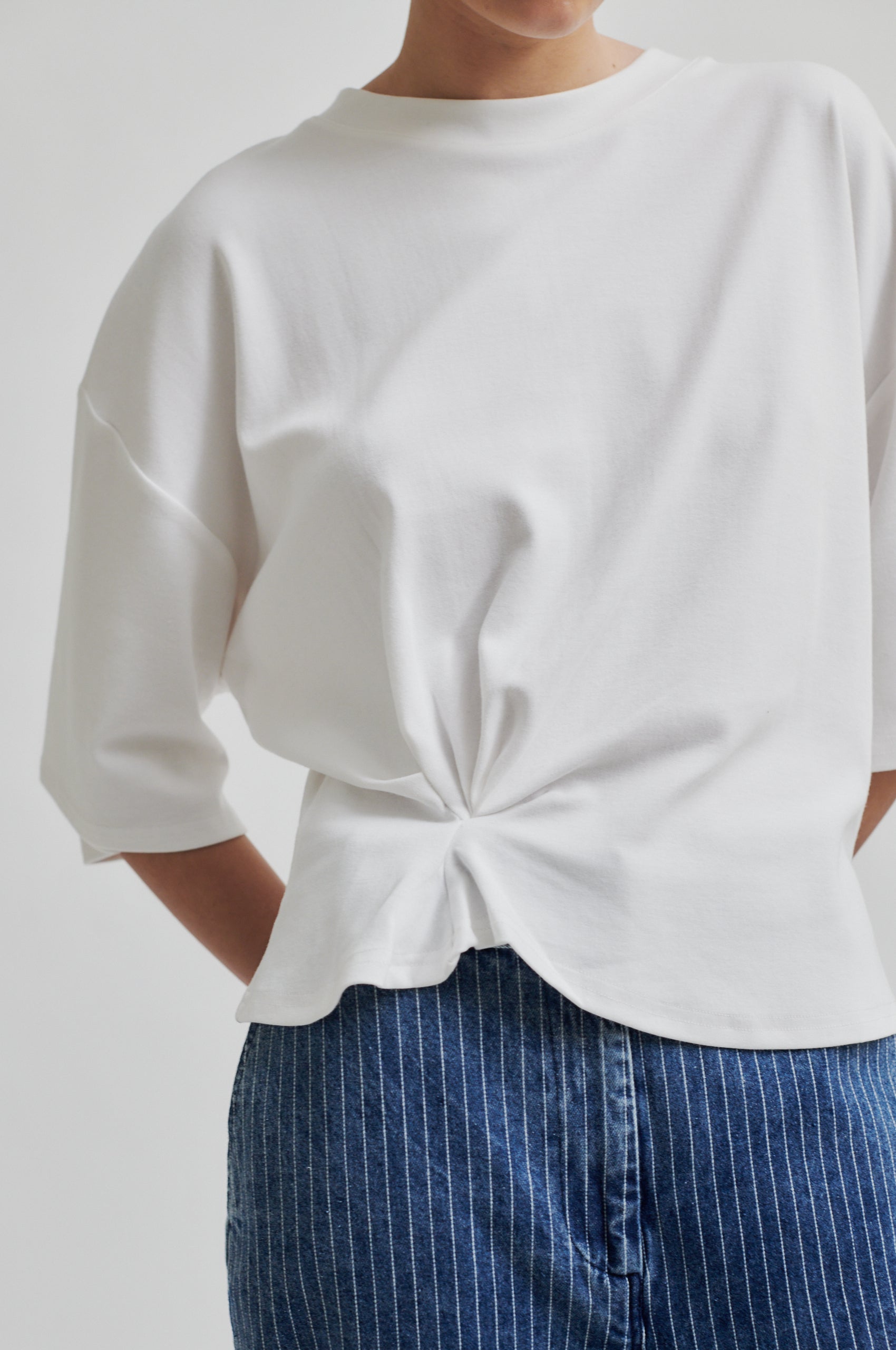 Oversize t-skjorte med drapering i siden fra Second Female. Kraftig stoff & noe kortere modell.