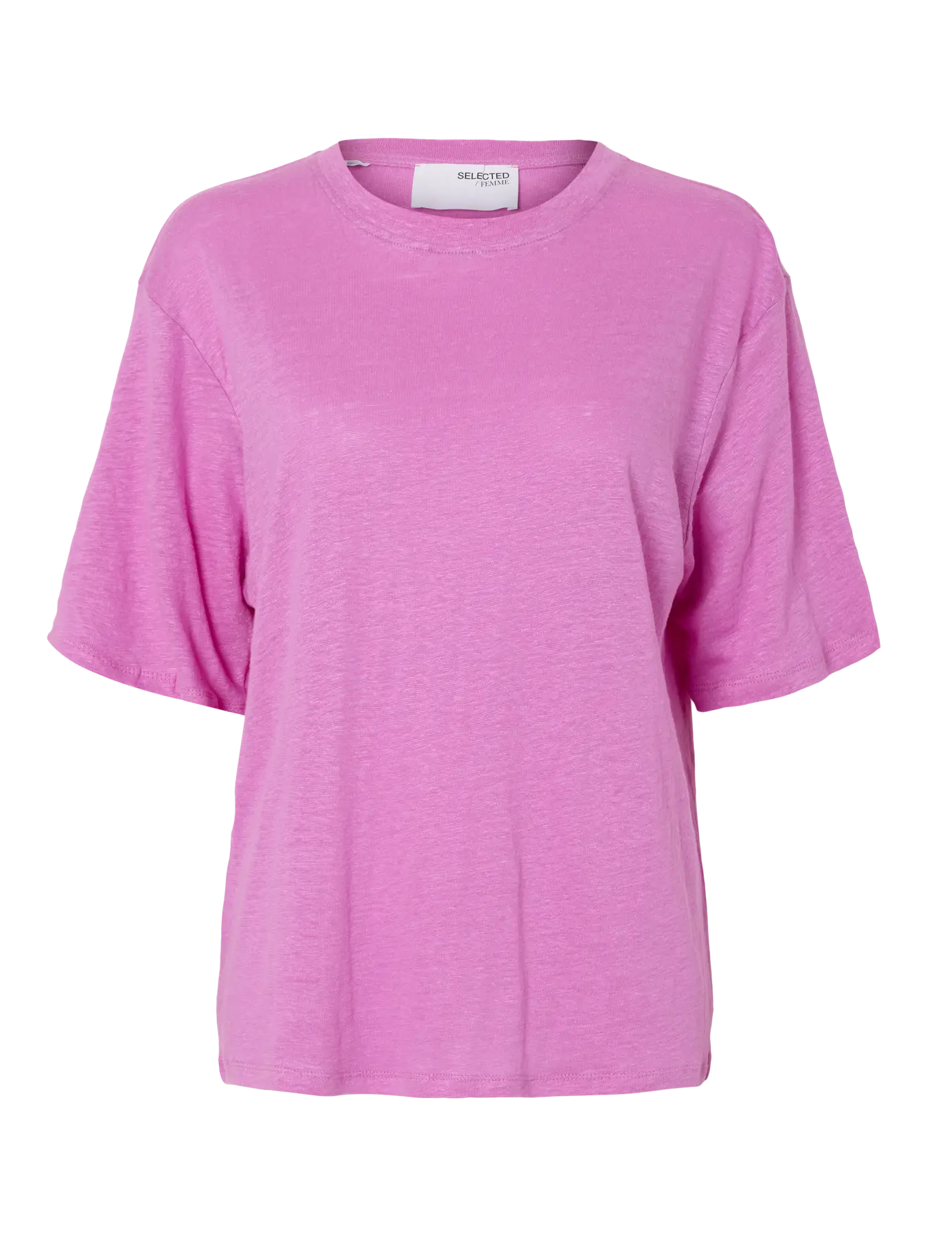 Enkel t-skjorte fra Selected Femme. Halvløs, rett modell med rund hals.