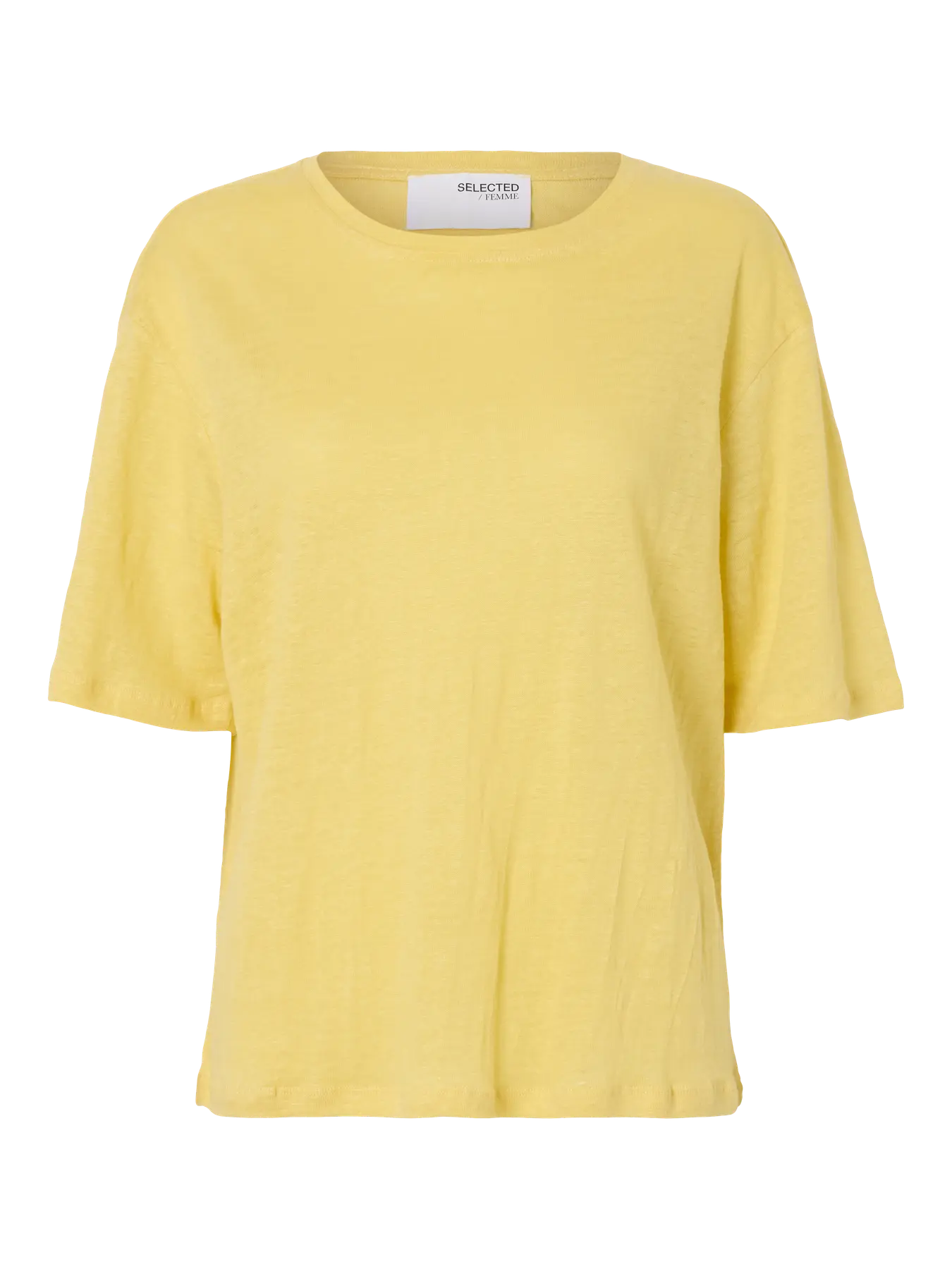 Enkel t-skjorte fra Selected Femme. Halvløs, rett modell med rund hals.