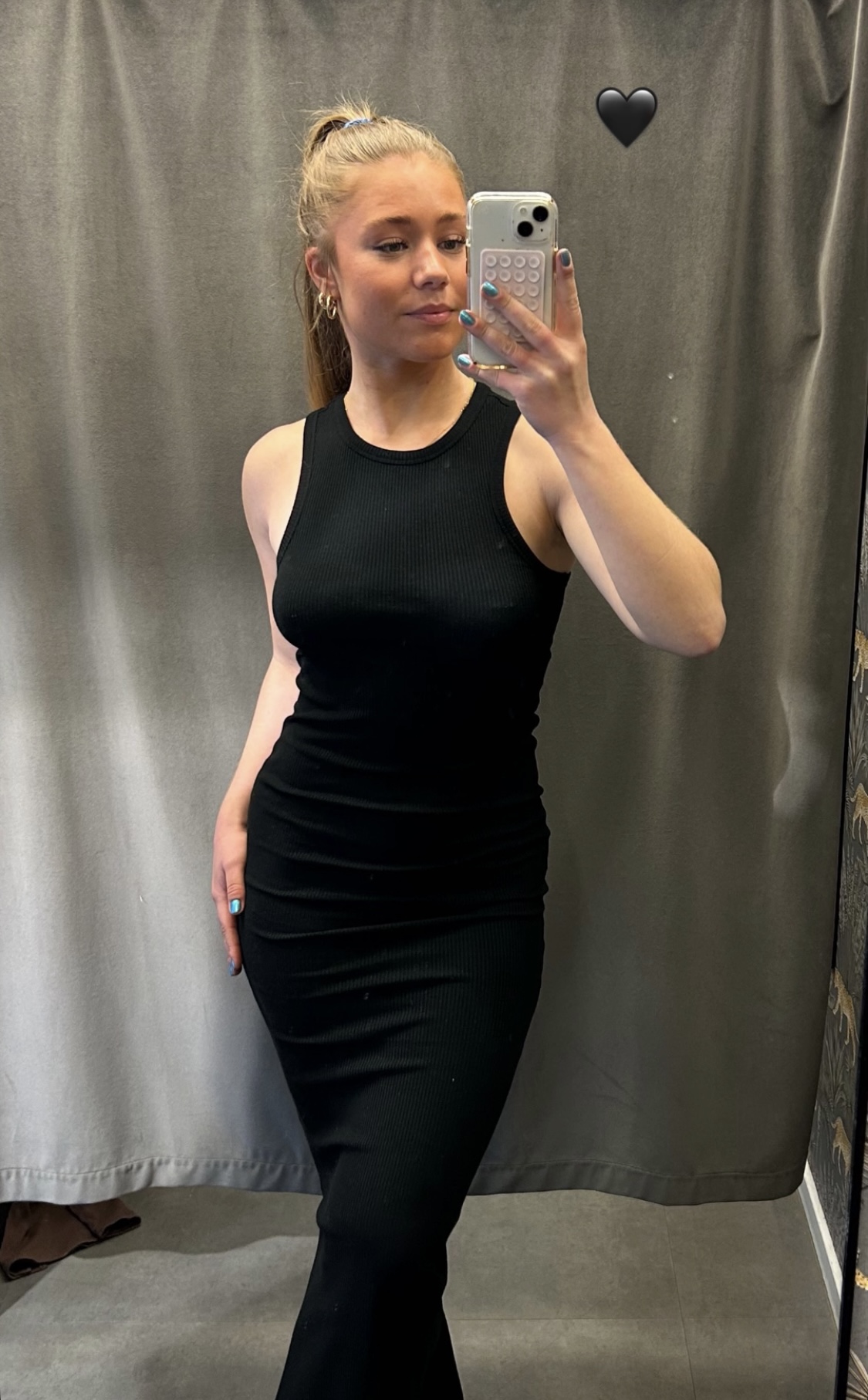 Sommerkjole i ribbet kvalitet fra Selected Femme. Splitt i siden.