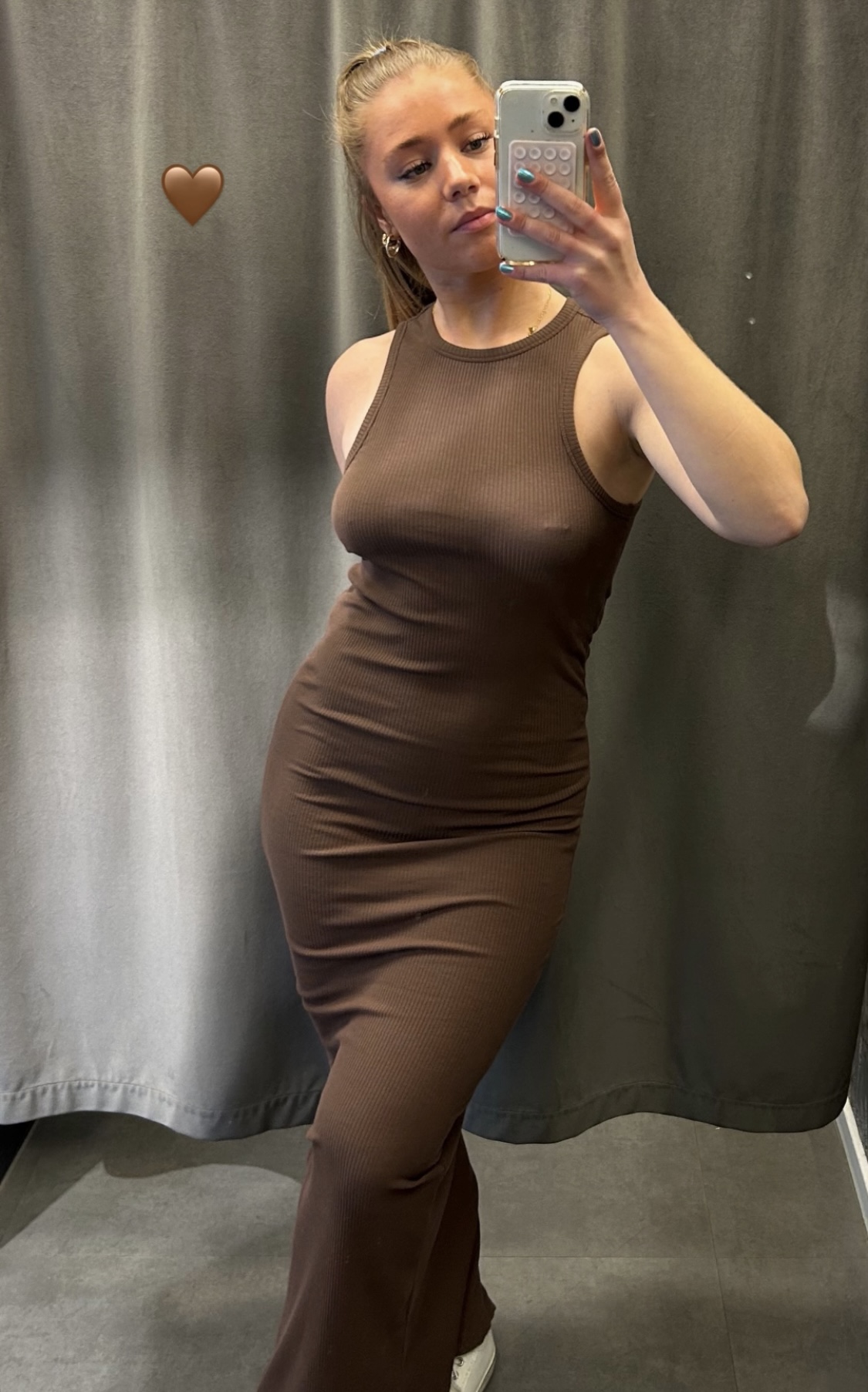 Sommerkjole i ribbet kvalitet fra Selected Femme. splitt i siden.