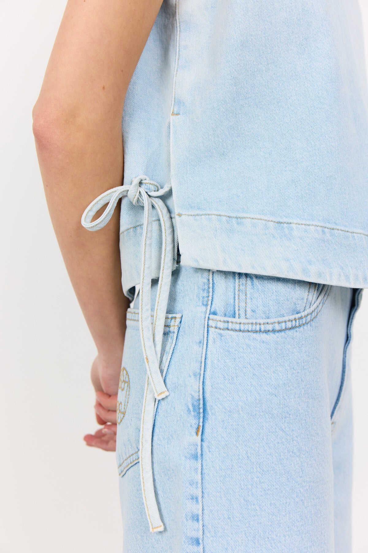 Denim-topp fra Levete ROOM. Knyting i siden.