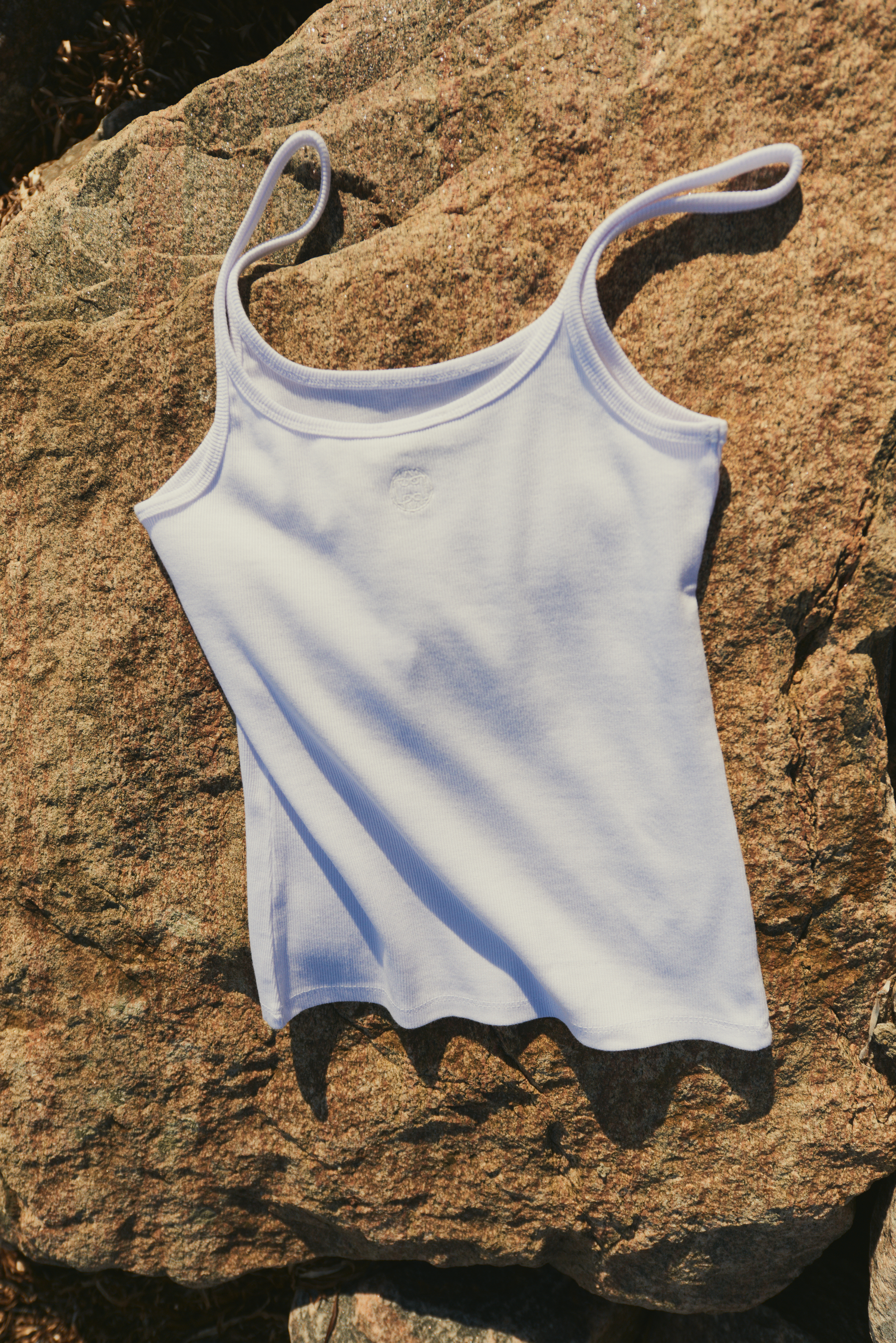 Singlet i ribbet kvalitet fra Levete ROOM. Logo-merke ton-i-ton bak.
