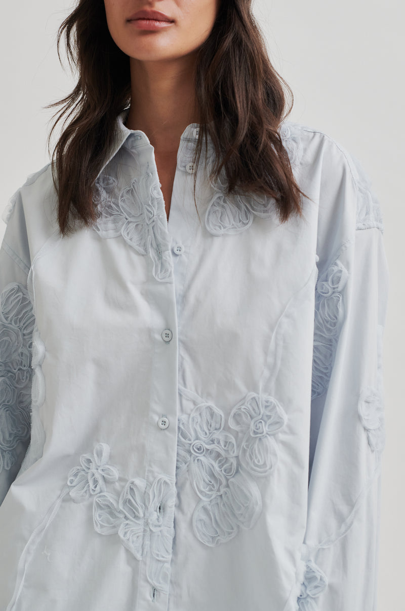 Stor-skjorte med blomster-detaljer fra Second Female. Oversize modell.