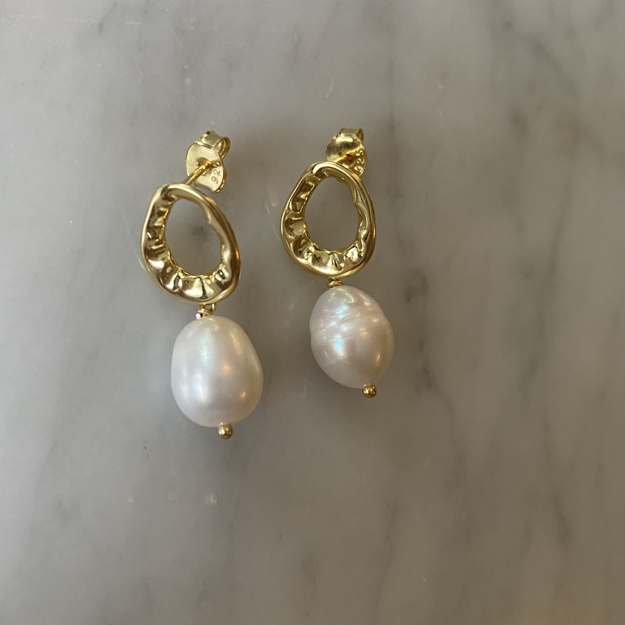 Øredobber med ferskvannsperler fra Khione. Selges i par.