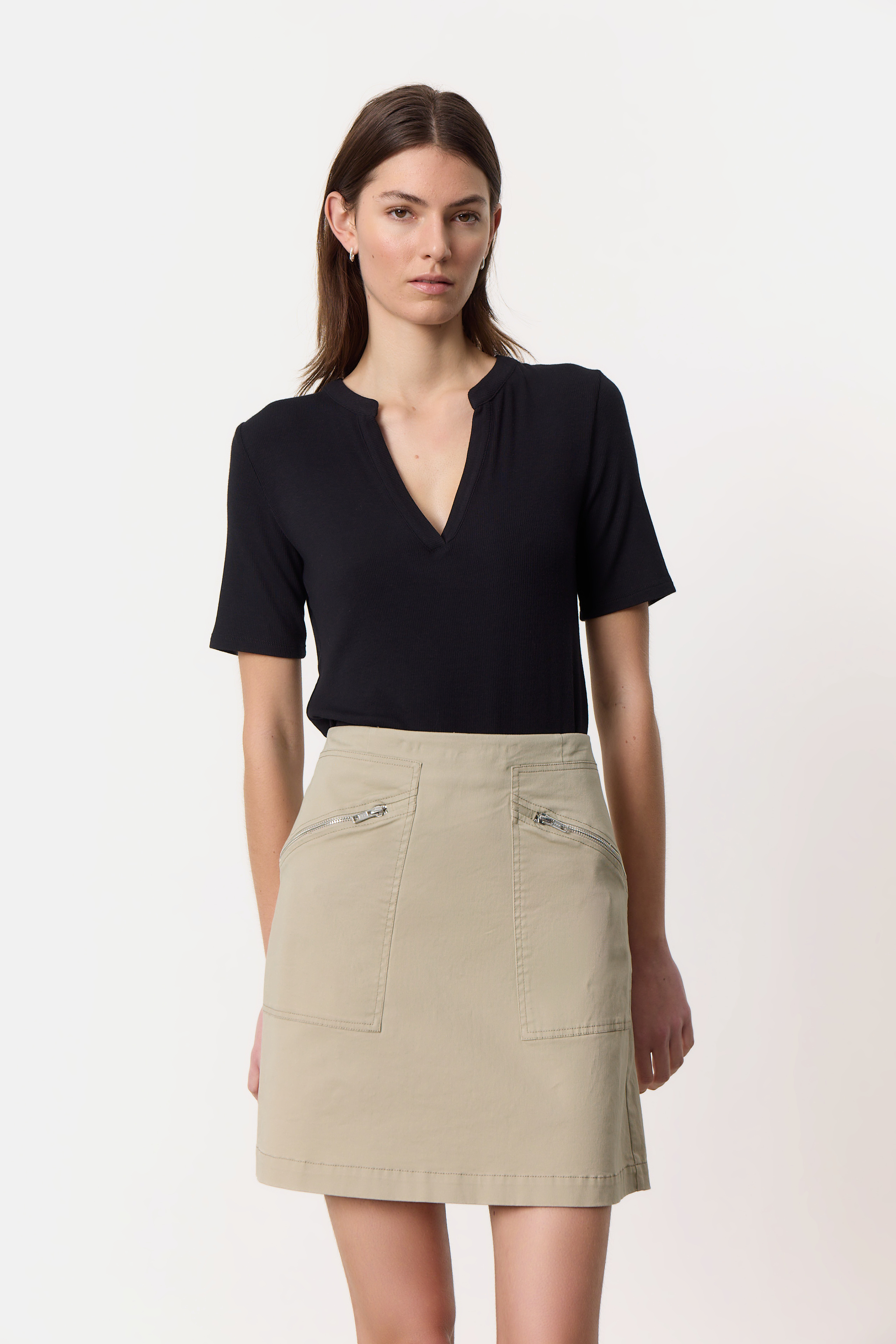 Topp med v-hals fra Levete ROOM. Tynn, myk ribbe-kvalitet. Overkastkant nederst.