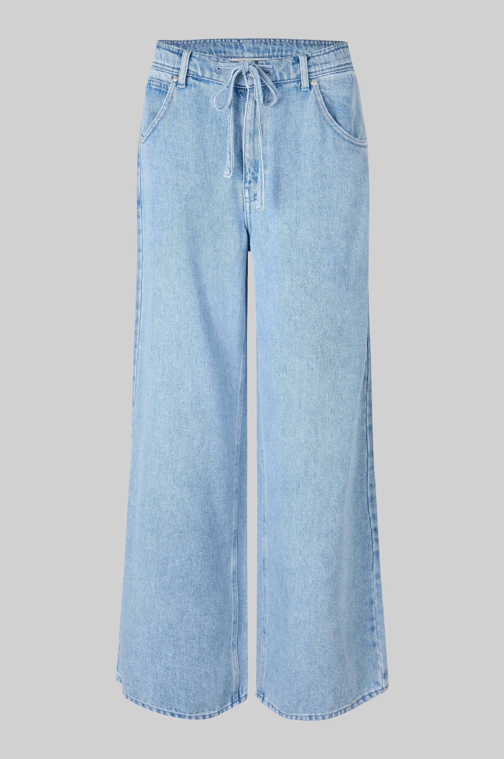 Denim med knyting i livet fra Second Female. Vid, rett modell. Supermyk kvalitet!