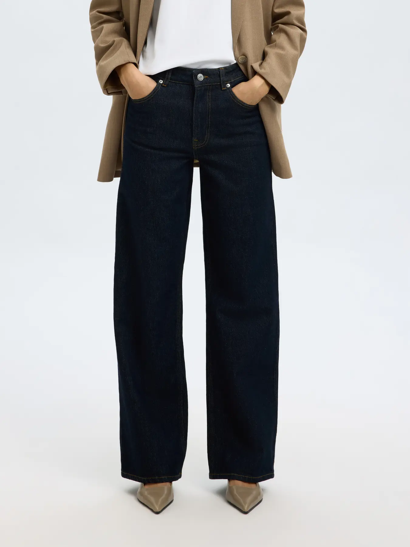 Rett, vid jeans fra Selected Femme. Vasket look & høy på livet.