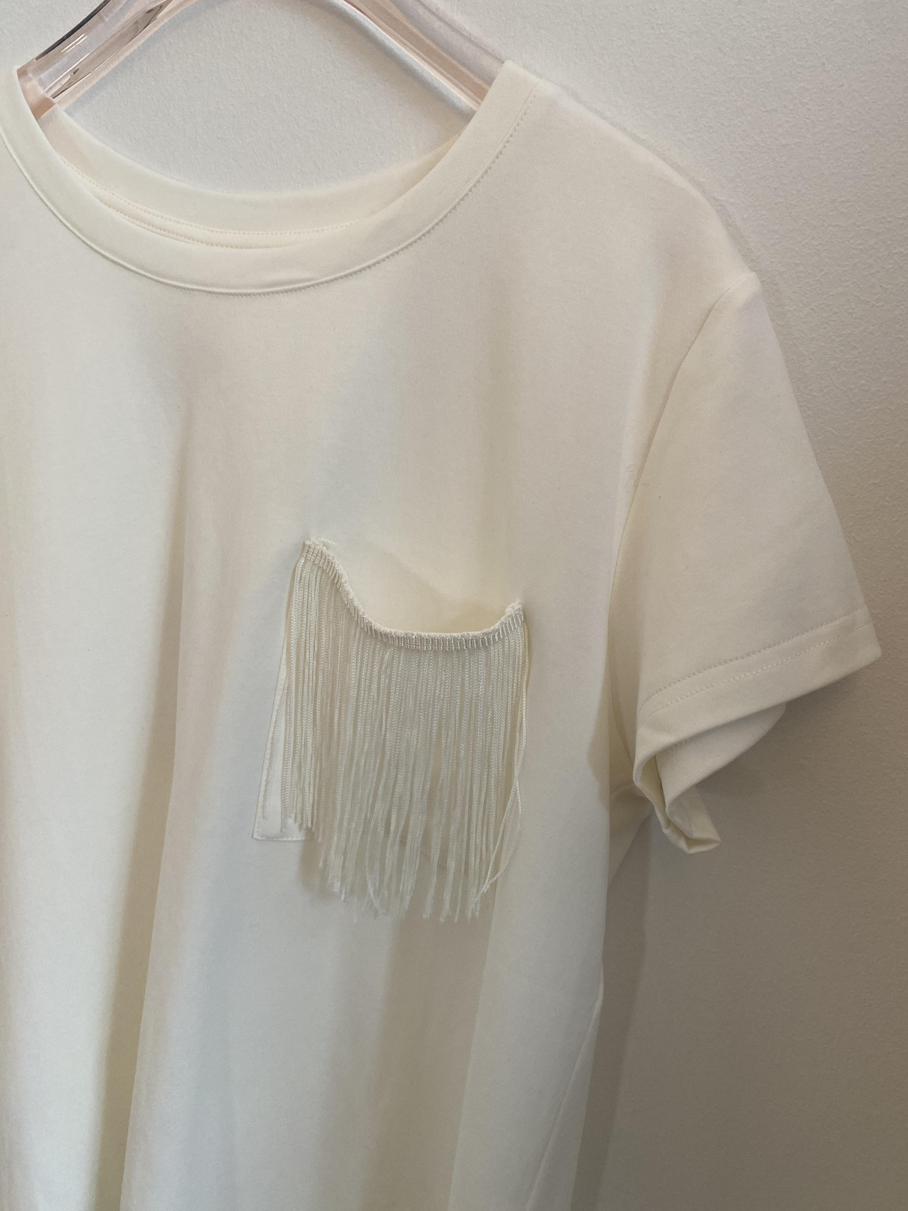 T-skjorte med frynser på brystlommen fra danske Gossia.
