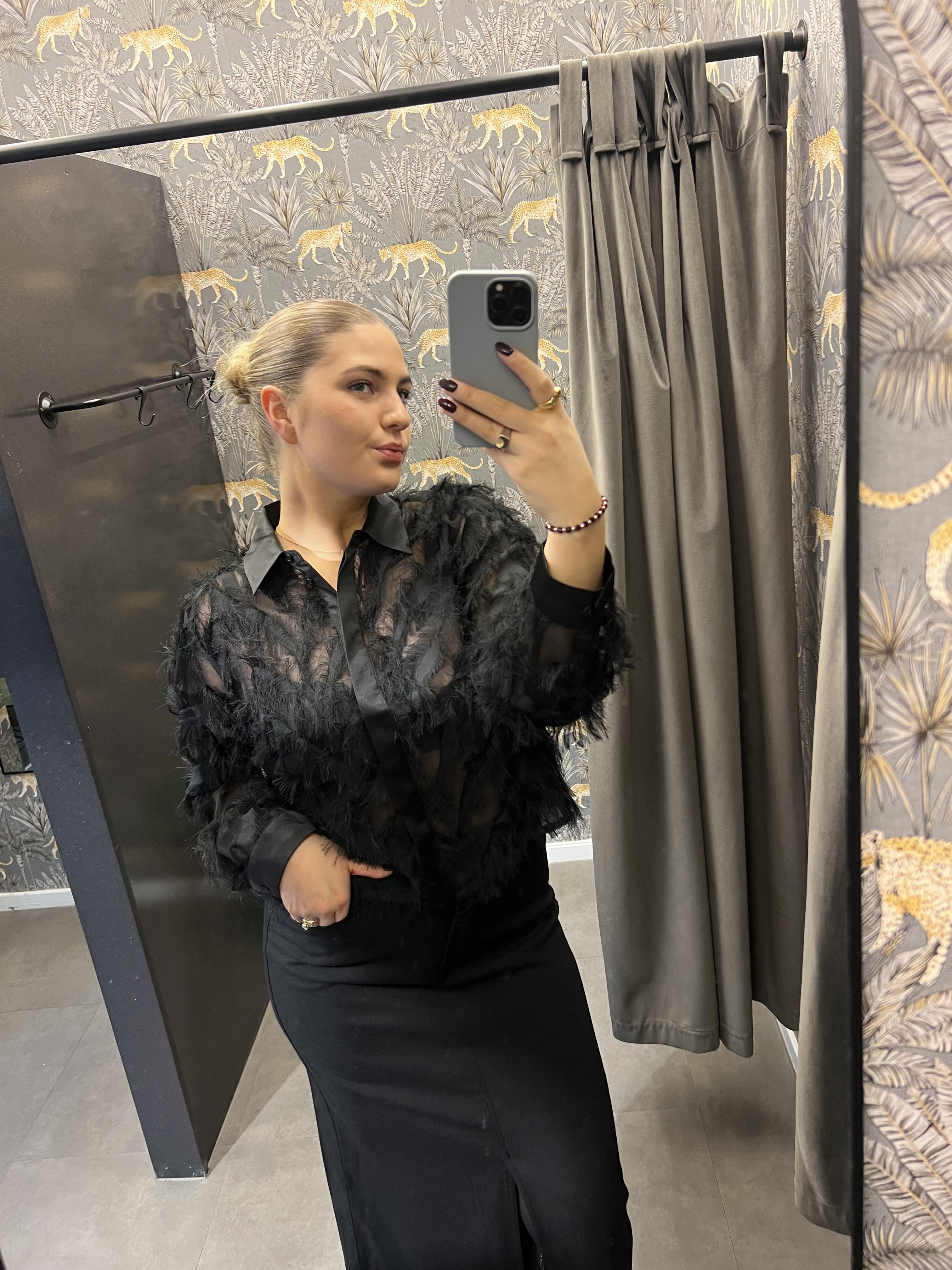 Skjorte med frynser fra Selected Femme. Noe gjennomsiktig.