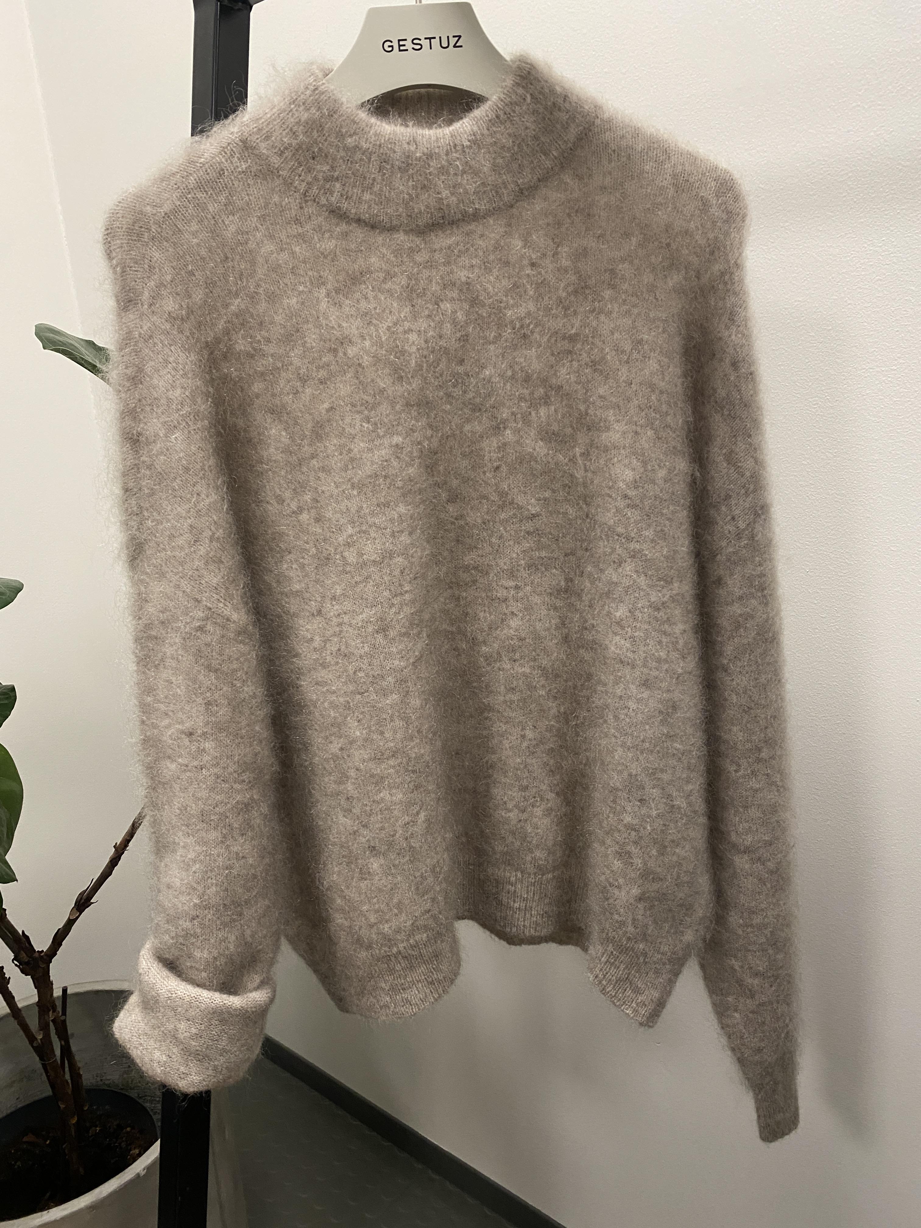 Genser i nydelig mohair-kvalitet fra Gestuz. Super ull-blanding som holder seg veldig bra.