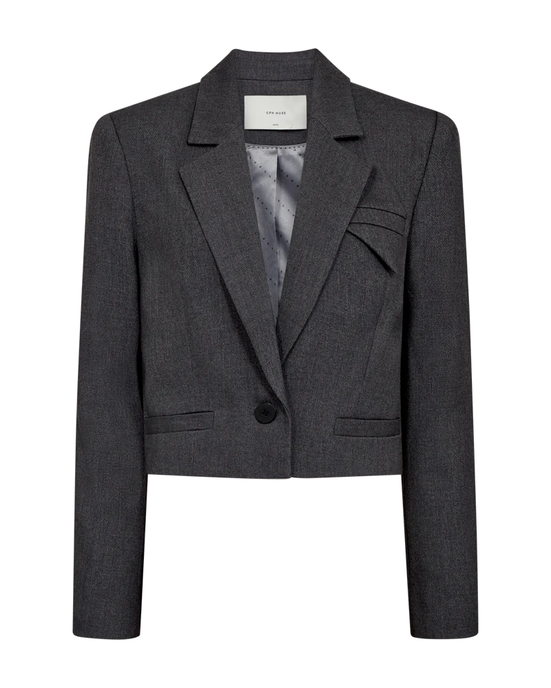 Blazer fra Copenhagen Muse. Fine detaljer & stødig stoff. Kortere, innsvinget modell. Fin i sett med Tailor Skirt.