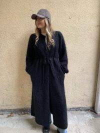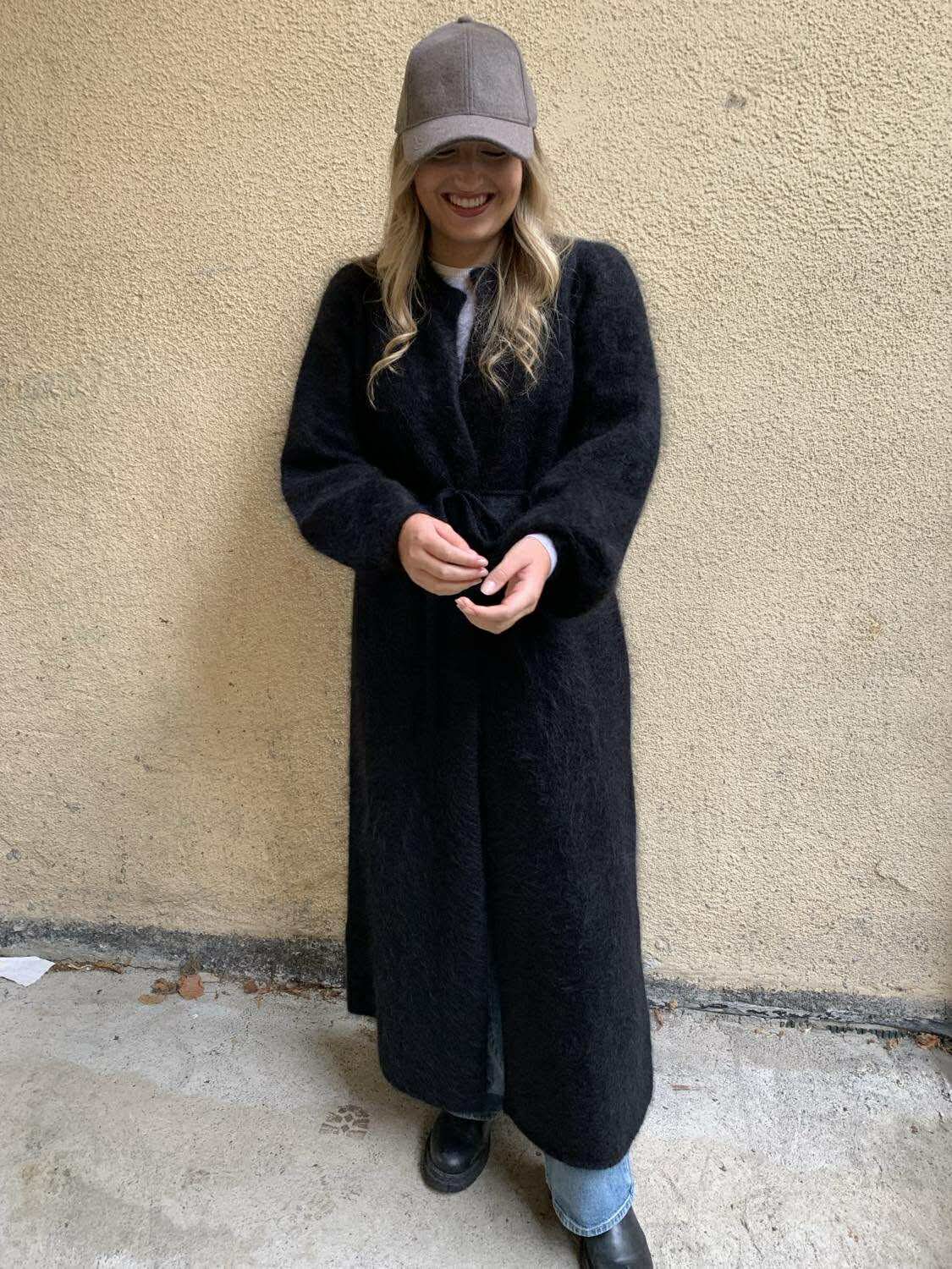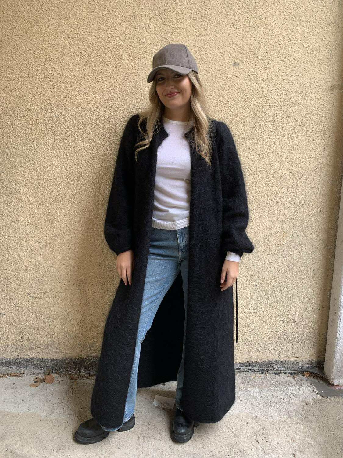 Herlig cardigan med ballongermer & bånd i livet fra norske Ella&il. Lang modell. Fantastisk ullkvalitet.