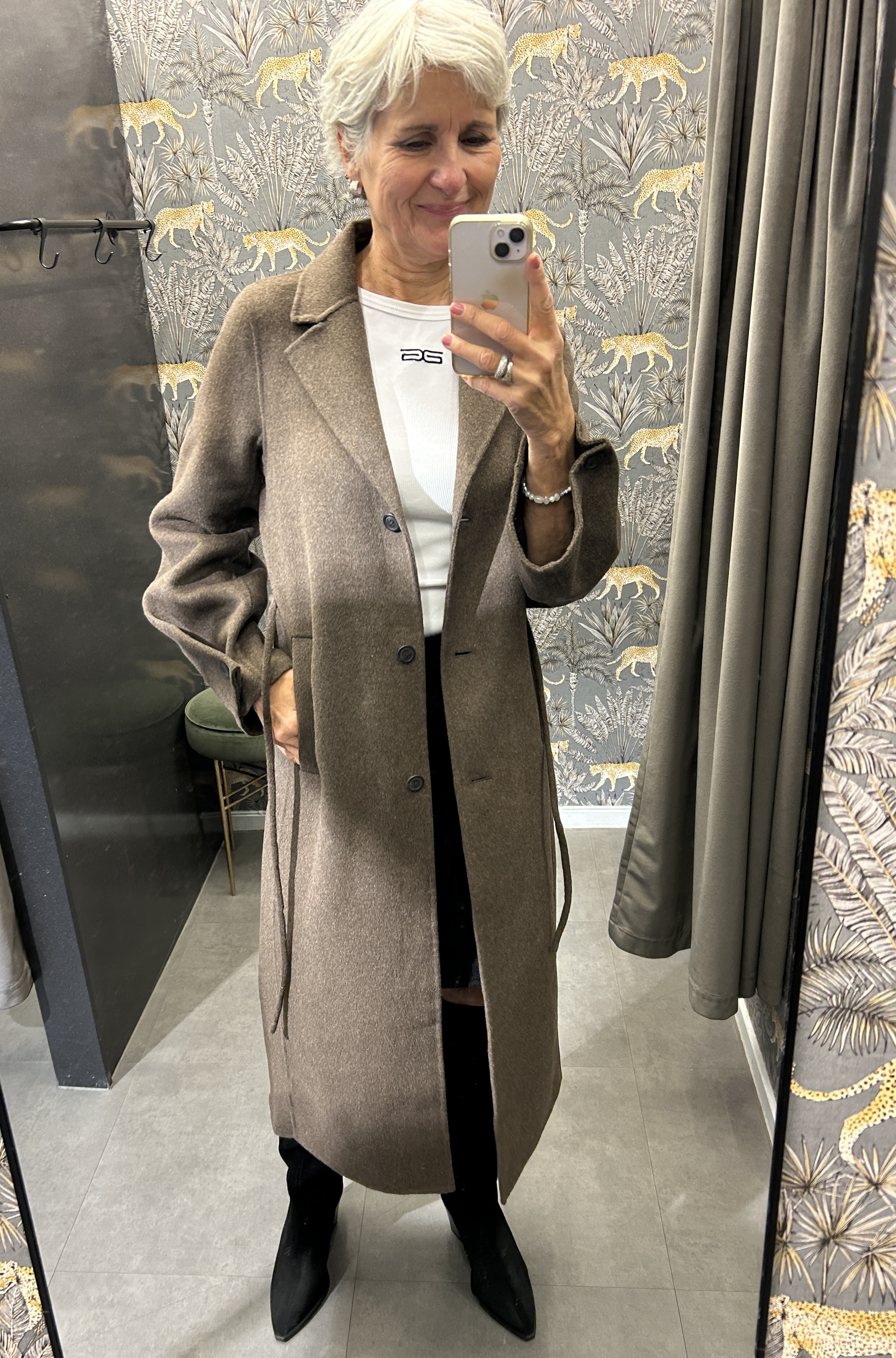 Ullkåpe med bånd i livet fra Levete Room. Fine detaljer. Ufôret.
