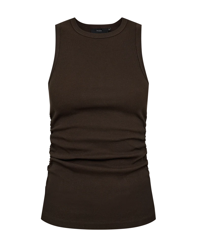 Topp med drapering fra Copenhagen Muse. Ribbet-kvalitet i bomull.