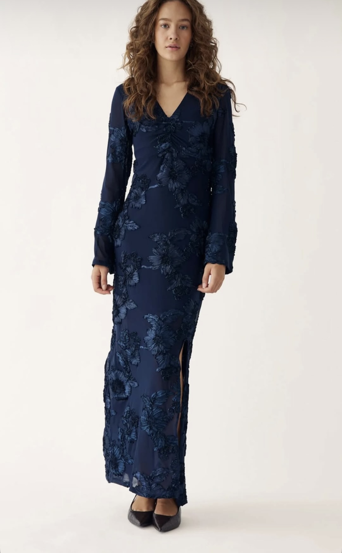 Lekker selskapskjole fra danske Noella. Splitt i front. Transparent på ermene & under kneet. Smal modell.