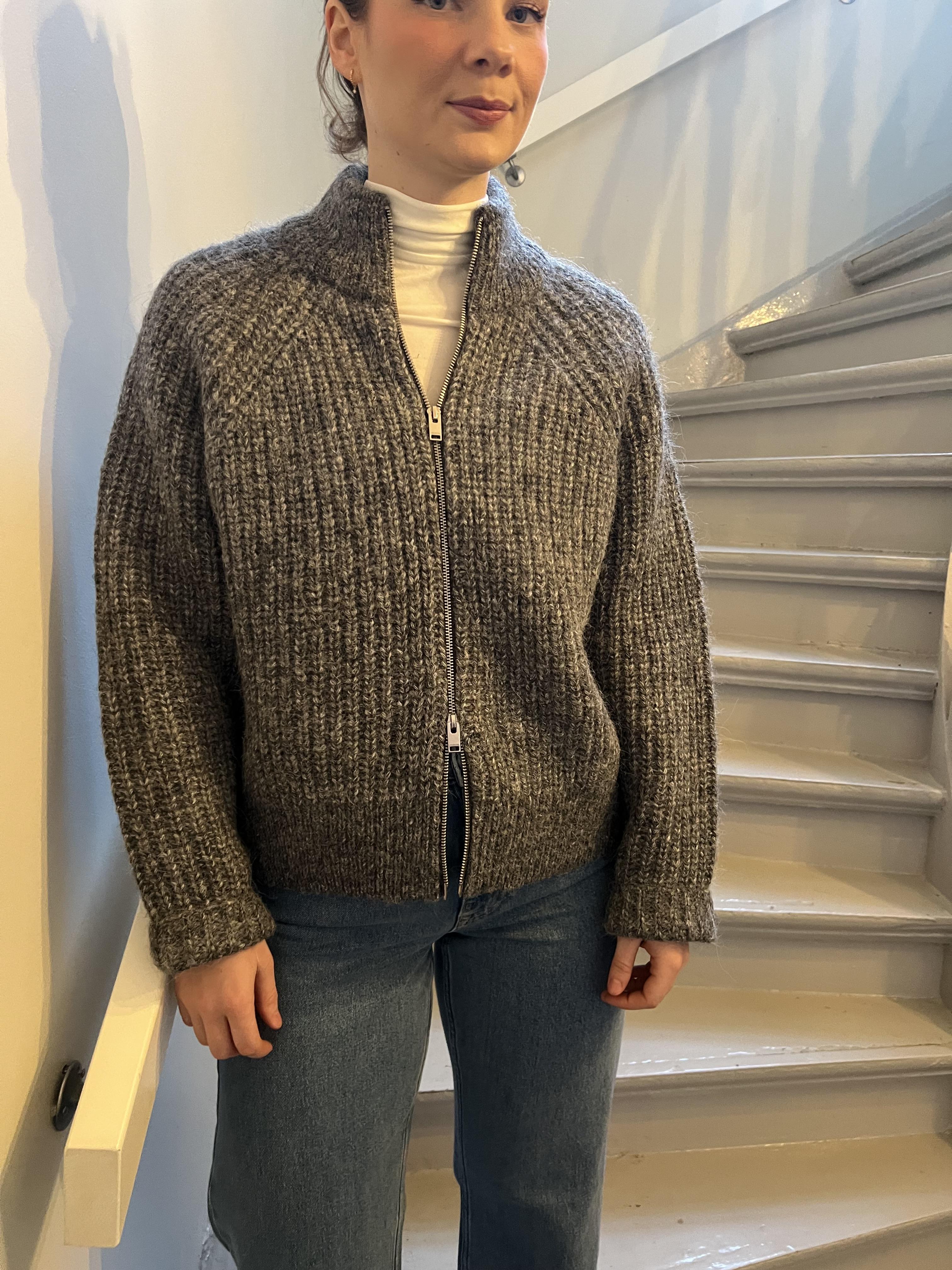 Ullcardigan i røff ribbestrikket kvalitet fra Selected Femme. 2-veis glidelås
