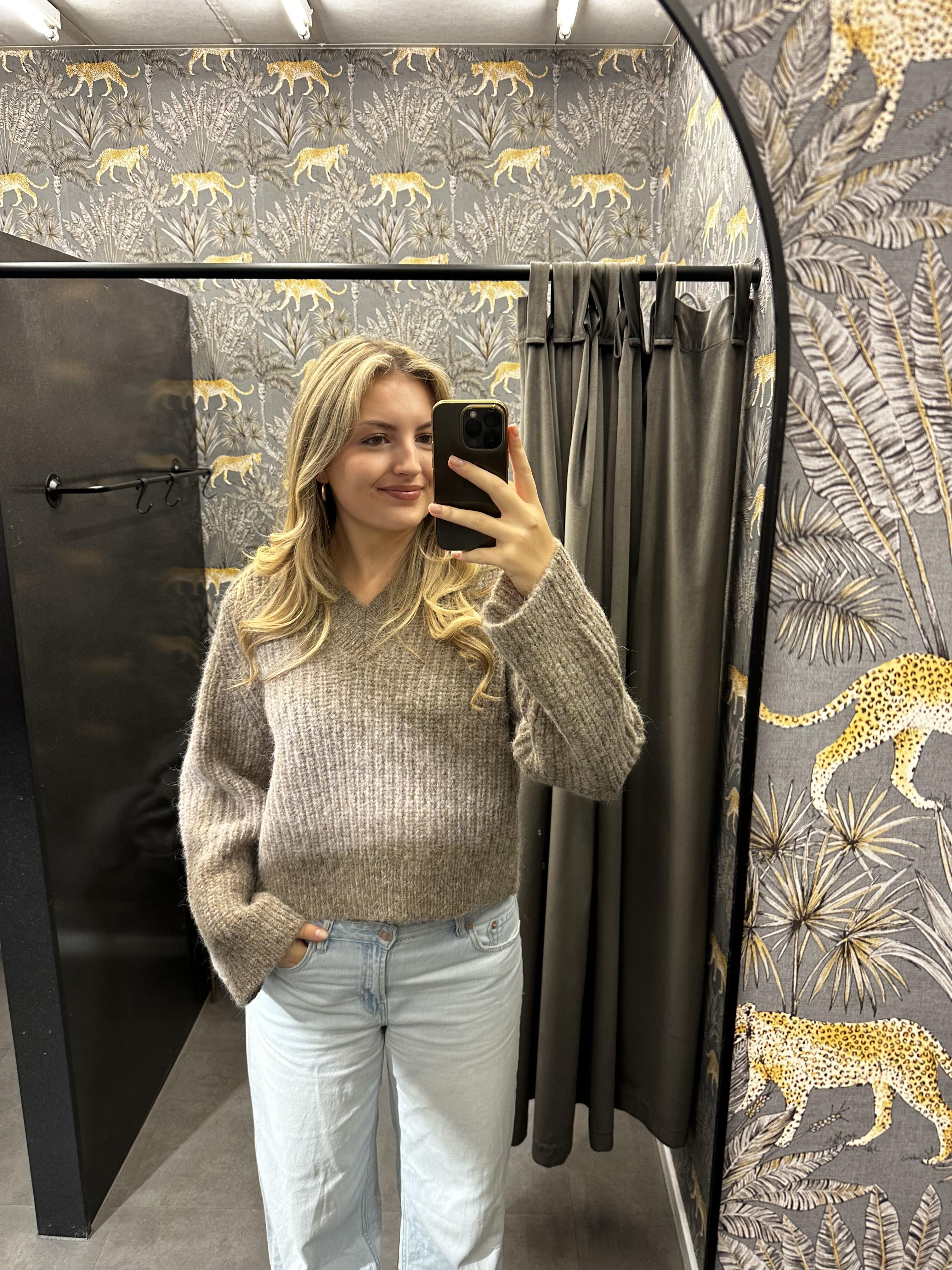 Ull-genser i røff ribbestrikket kvalitet med V-hals fra Selected Femme.