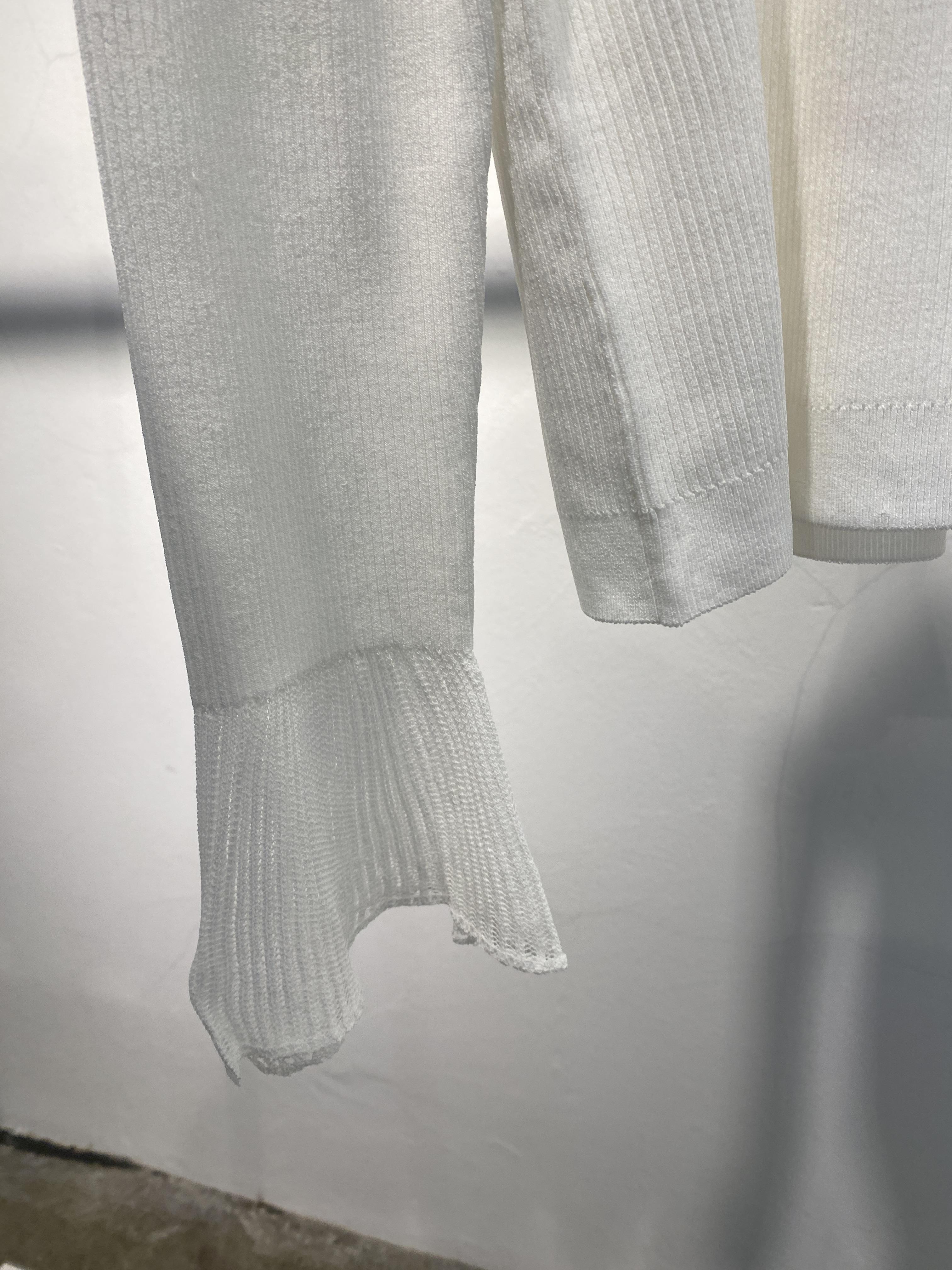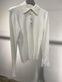 Topp med krage & volang på mansjett fra Levete Room. Fin struktur i stoffet. Smal modell.