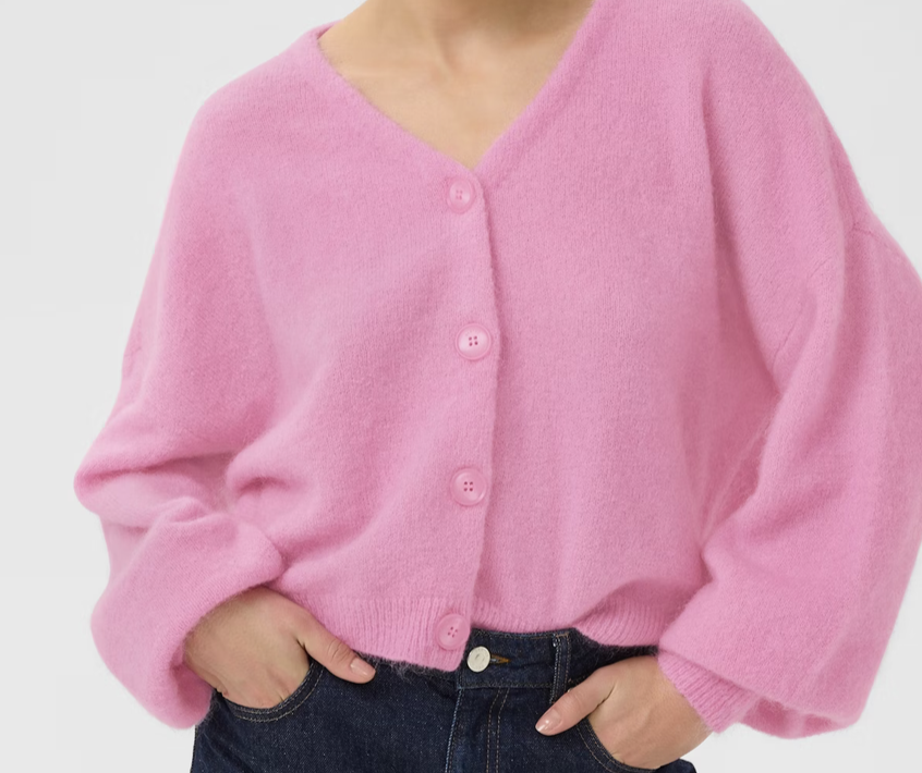 Cardigan i nydelig mohair-kvalitet fra Gestuz. Super ull-blanding som holder seg veldig bra.