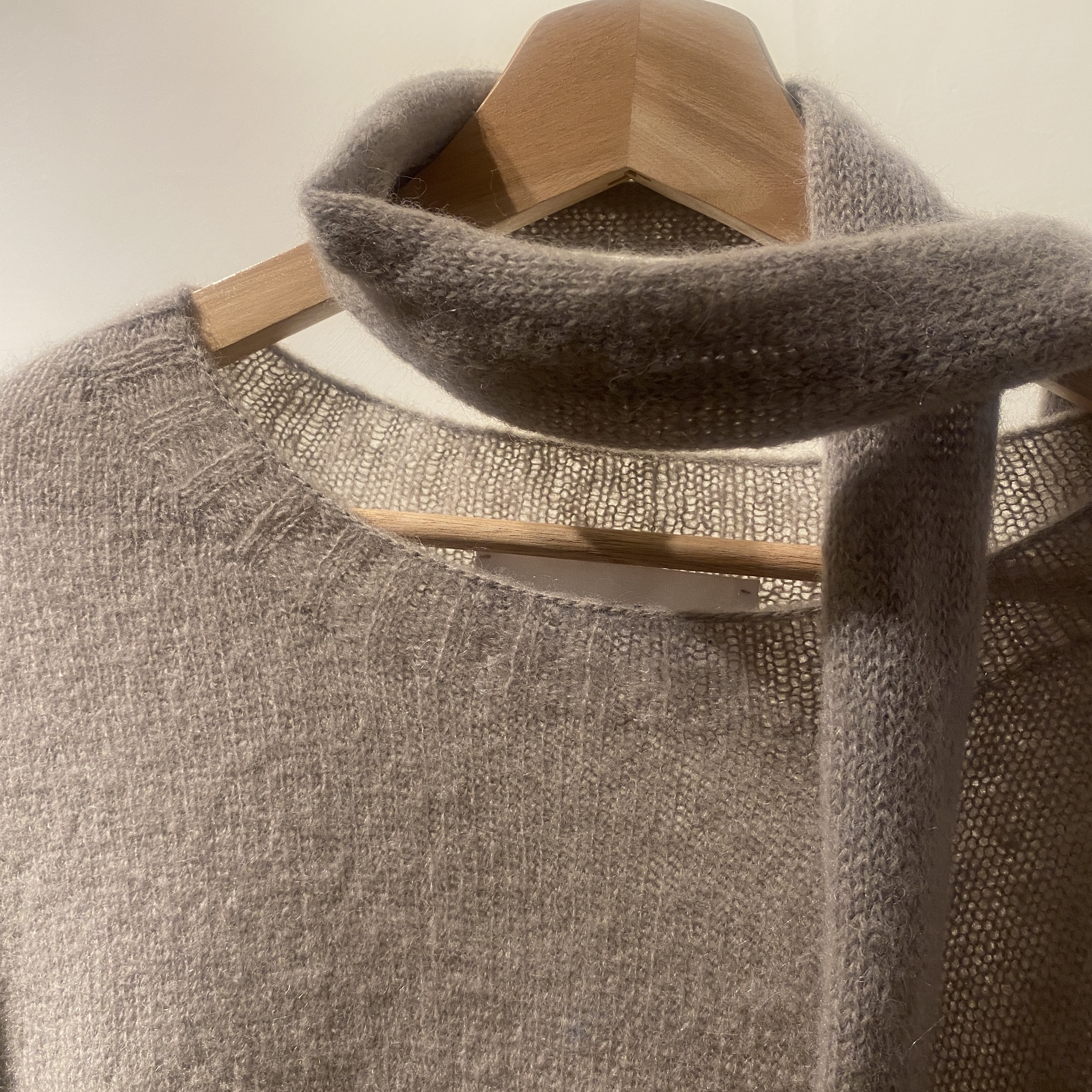 54% baby alpaca, 27% superkid mohair & 24% mulberry silk. Produsert i Norge.