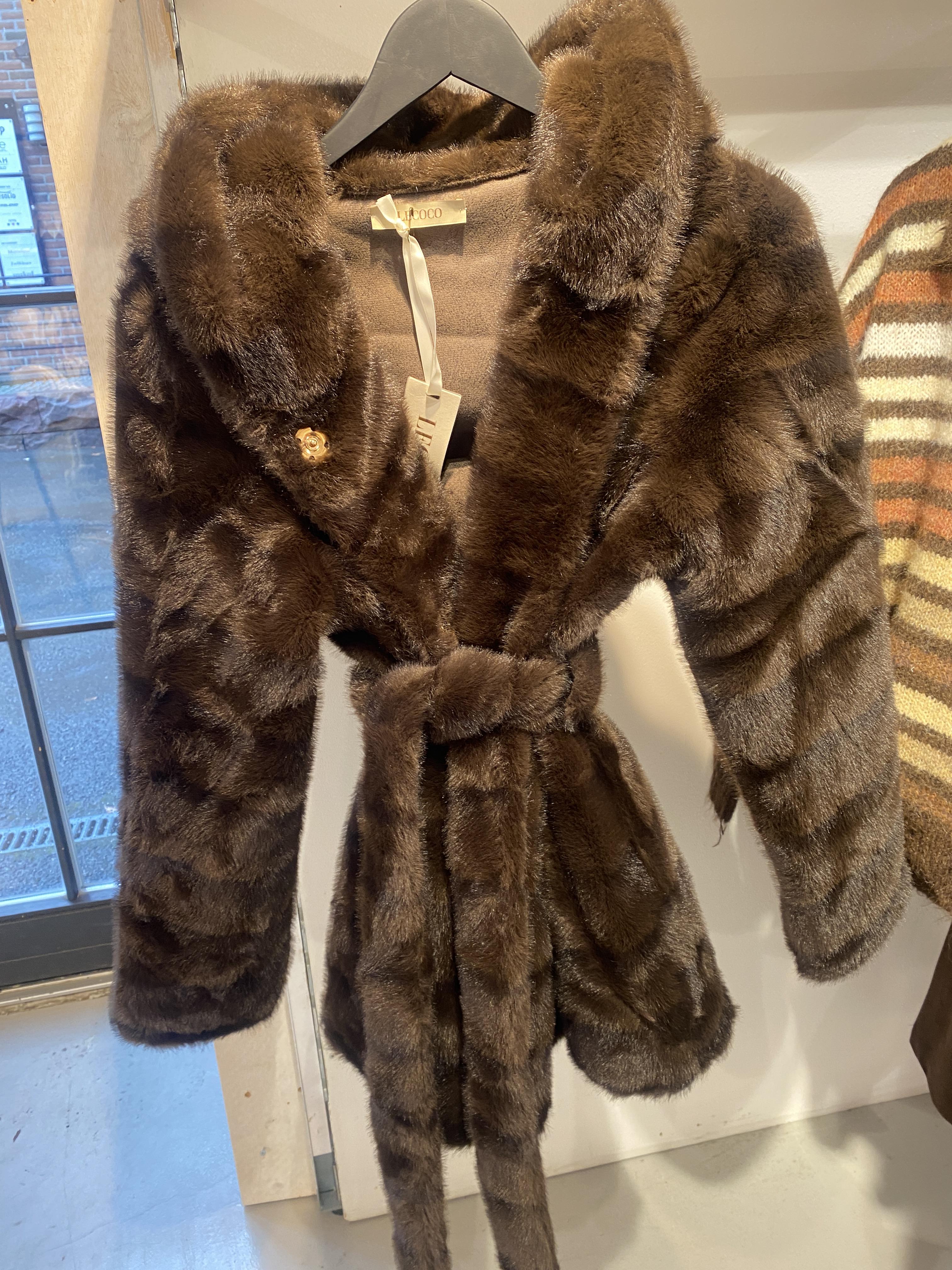 Fantastisk fake fur jakke fra danske LECOCO. Bånd i livet som lukking.