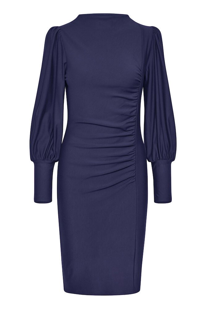 Kjole med ballongermer med saml mansjett fra Gestuz. Myk, kraftig kvalitet. Flatterende draperinger.