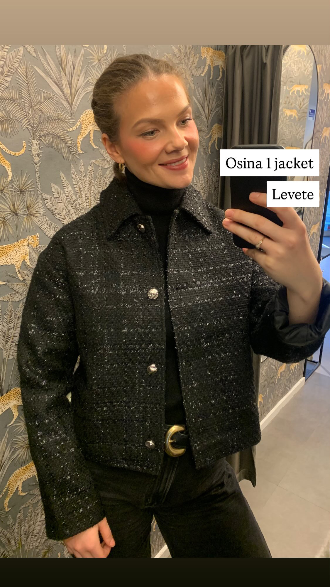 Klassisk boucle-jakke med fôr fra Levete Room. Glatt, stødig stoff som holder seg veldig bra.