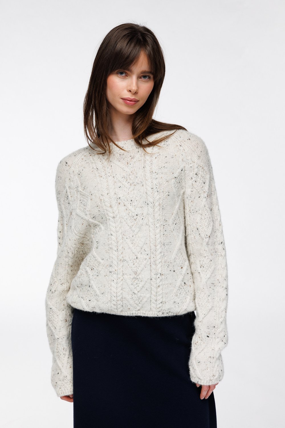 Kabelstrikk i 100% ull fra norske Woodling. Noe kortere modell.