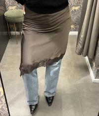 Skjørt med blondetaljer fra danske Gossia. Asymetrisk & strikk i livet. Fin i sett med Ember Top.
