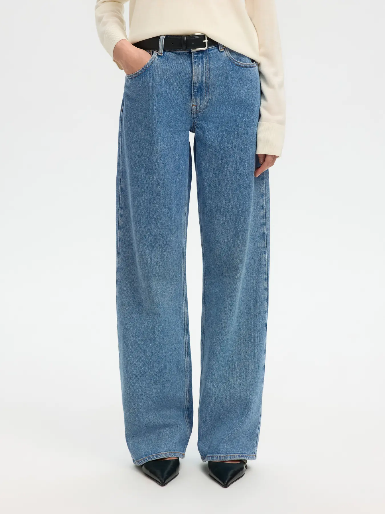 Rett, vid jeans fra Selected Femme. Vasket look & høy på livet. Bestselger-modell!