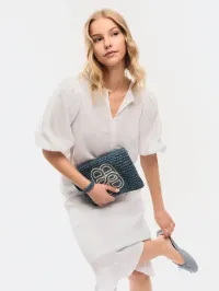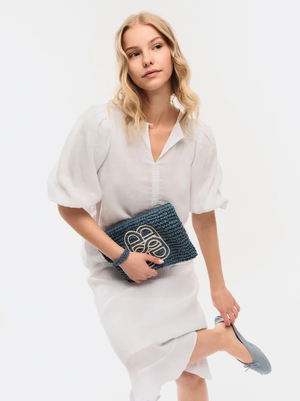 Mim Straw Clutch Blue
