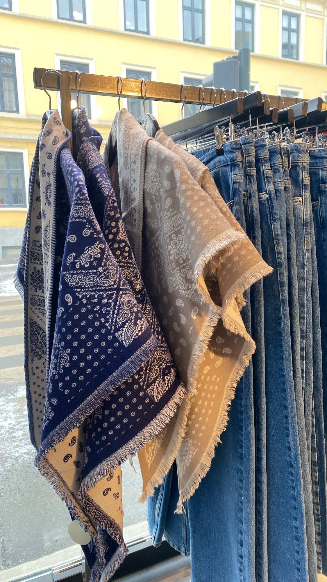 Stort trekant-skjerf fra Endless. Fint i halsen & rundt skuldrene. Kan brukes begge veier.