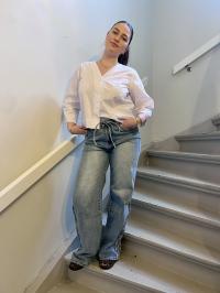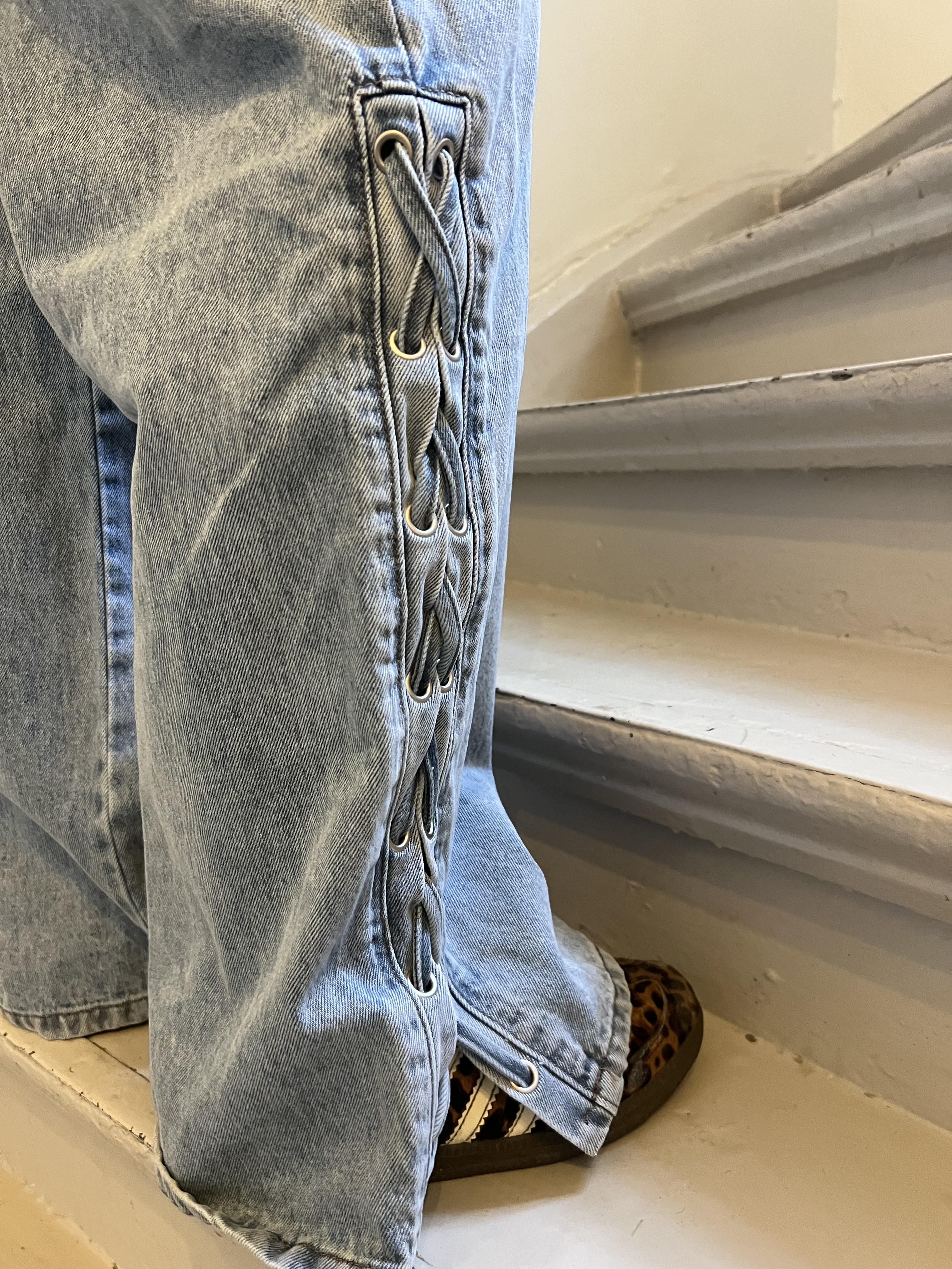 Rett, vid jeans med snøring fra Moves. Vasket look & bånd i livet. Matchende sett med Zendaya Jacket.