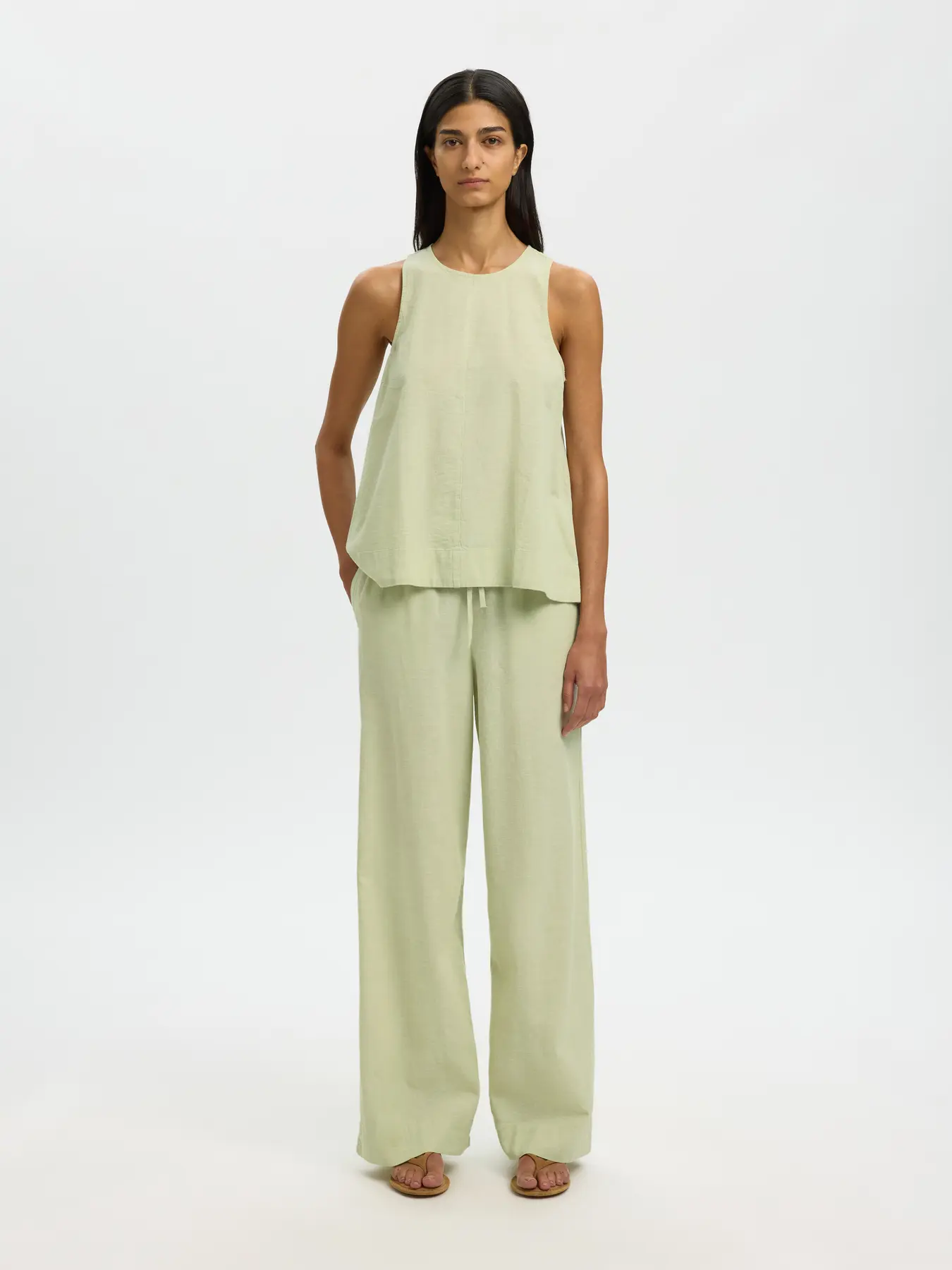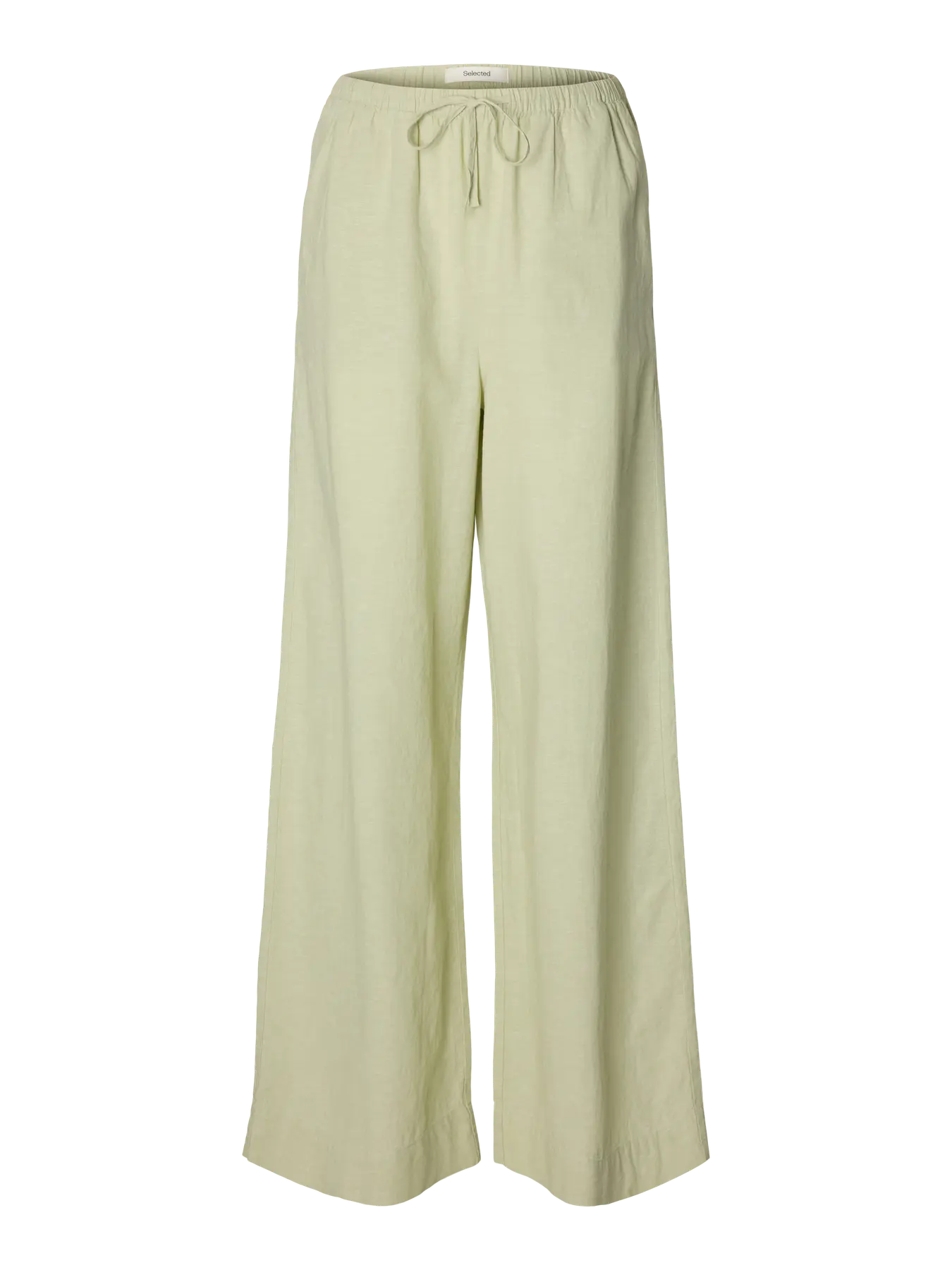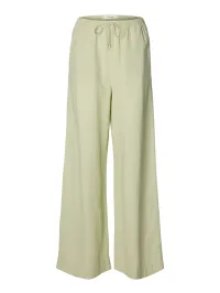 Vid bukse i linblanding fra Selected Femme. Snøring i livet. Rett modell.