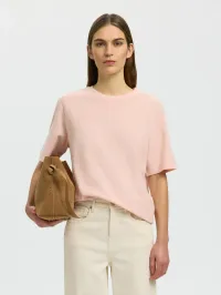 Enkel t-skjorte fra Selected Femme. Halvløs, rett modell med rund hals.