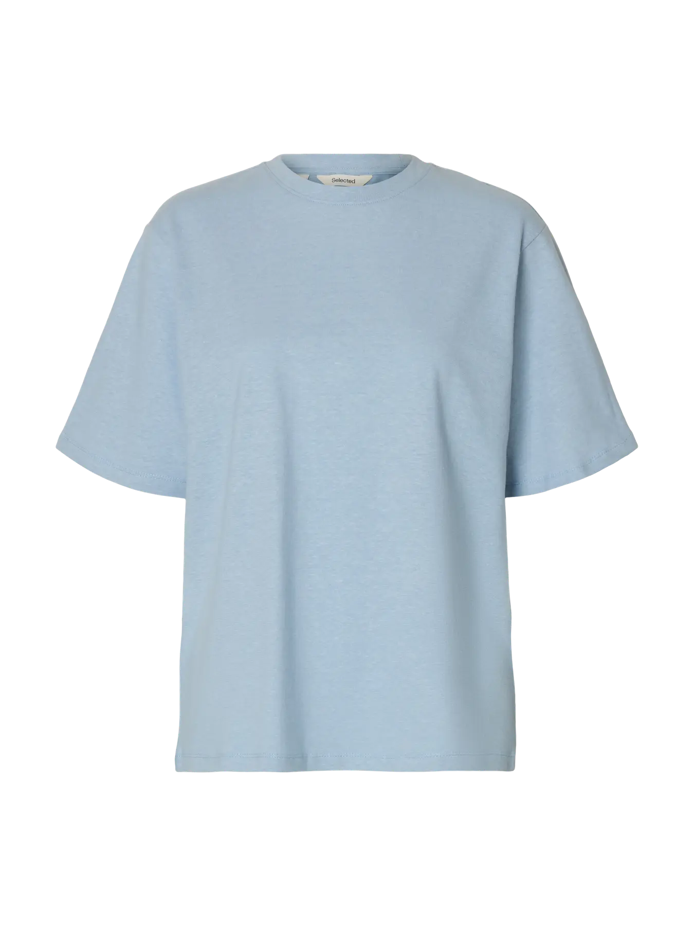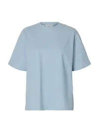 Enkel t-skjorte fra Selected Femme. Halvløs, rett modell med rund hals.