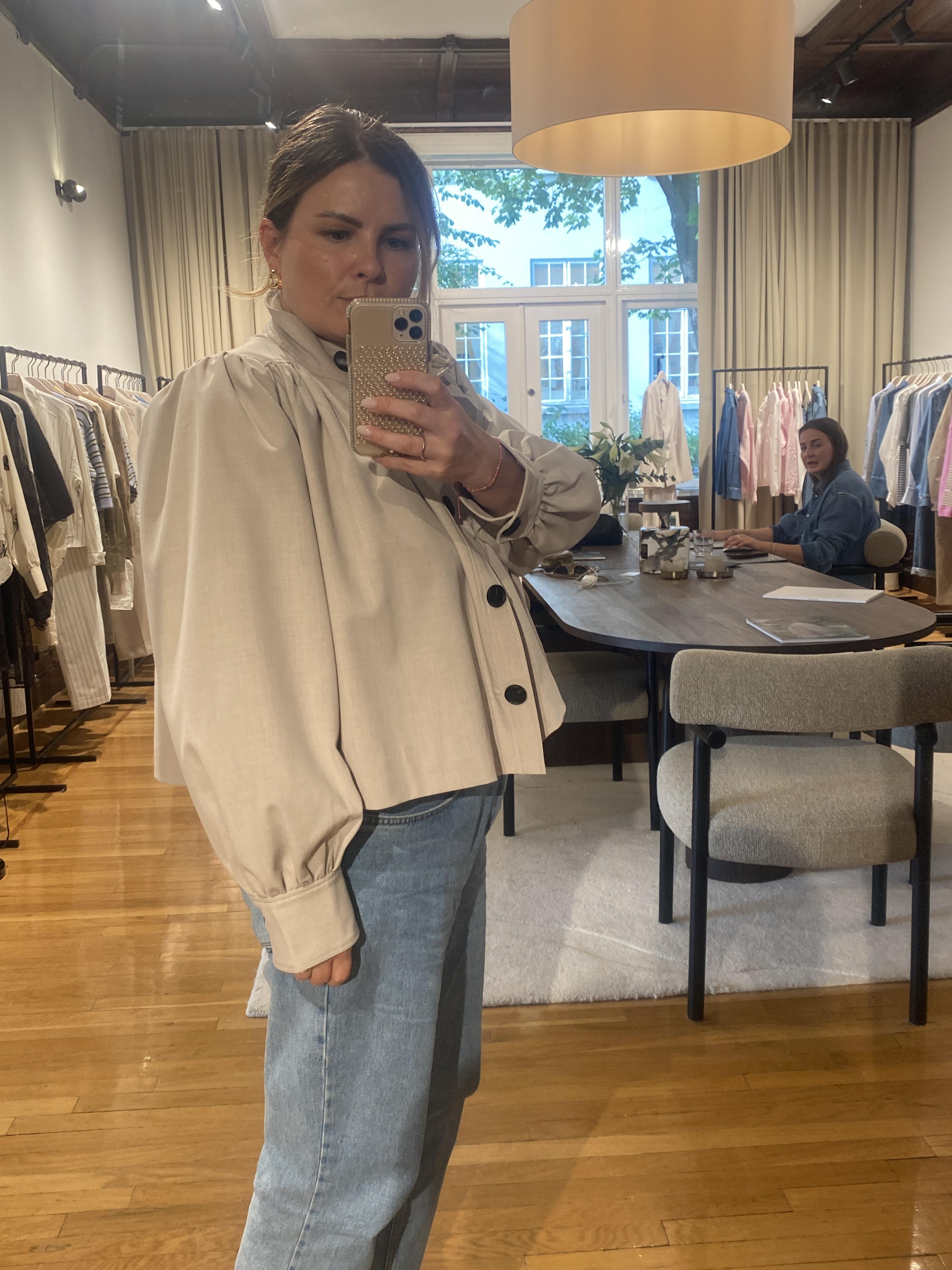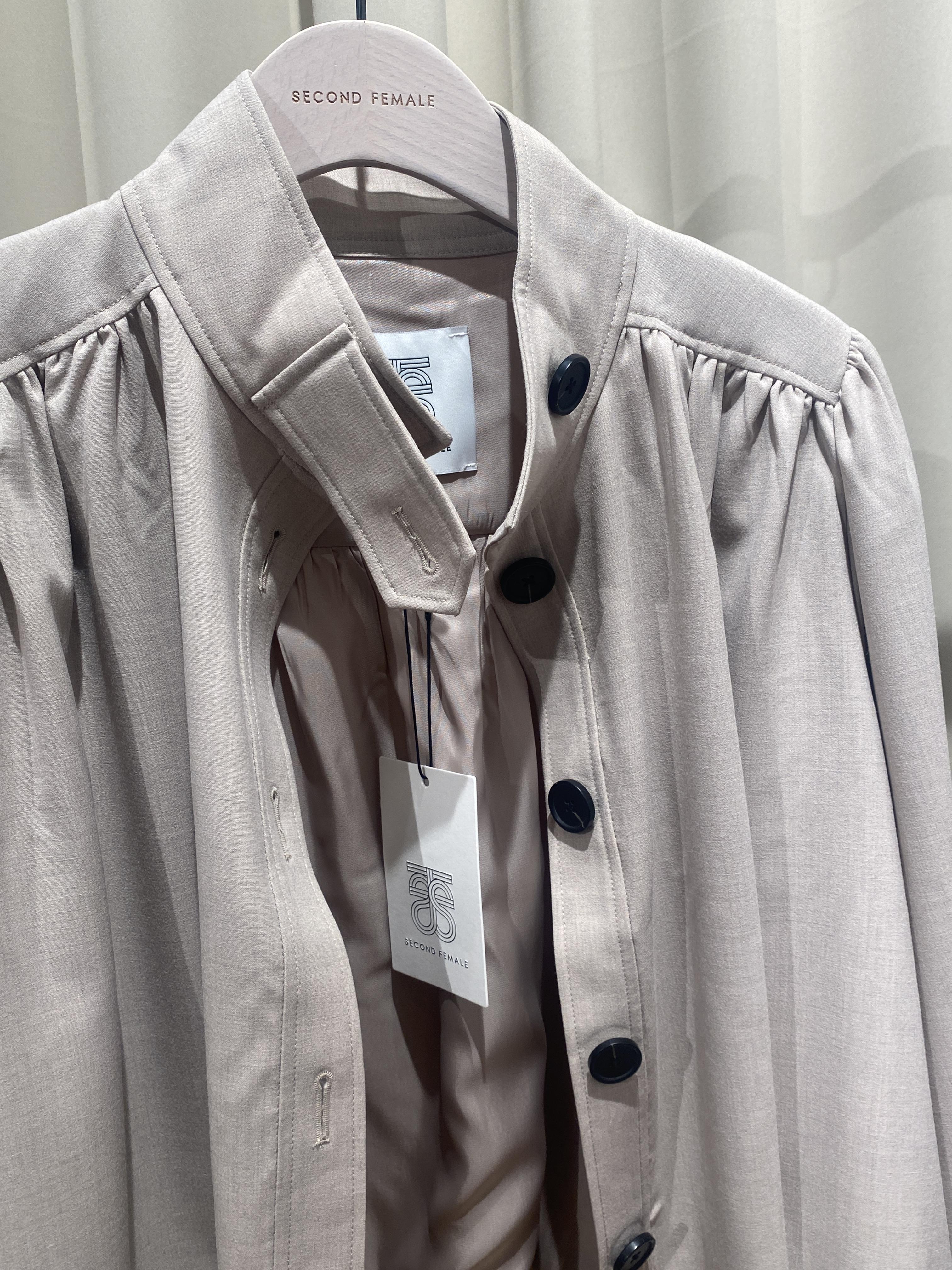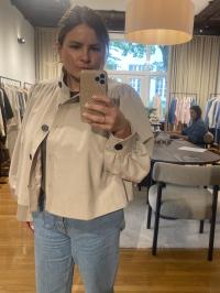 Kort, oversize trench-jakke fra Second Female. Kraftig kvalitet med pent fall i stoffet.