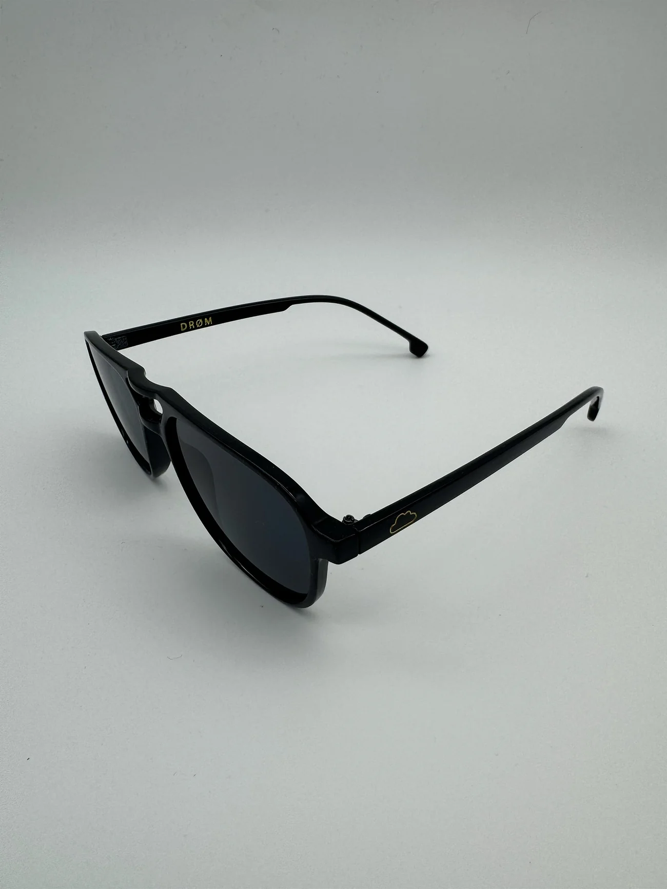 Solbriller fra DRØM. Inngravert logo & navn, samt sammenleggbar hardcover boks & pusseklut.